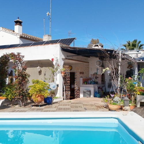 This bright, airy, and bespoke 2-bedroom home is a peaceful retreat nestled in a charming rustic countryside community. Full of character and quirks, this traditional dwelling offers a spacious lounge with a sturdy wooden staircase leading to a storage area in the eaves and a hatch opening to a private roof terrace. The master bedroom comes with air conditioning, and the tiled bathroom includes a shower.