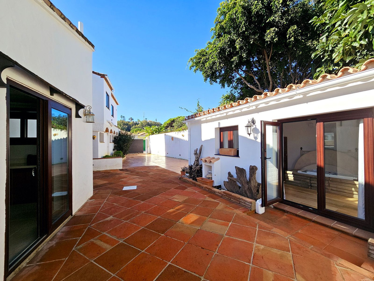The main house has 5 bedrooms, 3 large refurbished bathrooms, 2 sitting rooms with 2 fireplaces, a large open plan kitchen, dining area, all spread over two floors. There is a further guest apartment with separate entrance that would be ideal for staff, teenagers or guests. The 851m² plot is completely flat making the garden area 100% useable. The garden houses an extremely large swimming pool and lawn area, which is perfect for a family with children or pets. The villa is accessed via automatic gates, with a secondary door at the bottom of the garden for closer access to the beach. This property has maintained its Andalucian charm with beautiful wooden beams, vaulted ceilings, and traditional tilework.