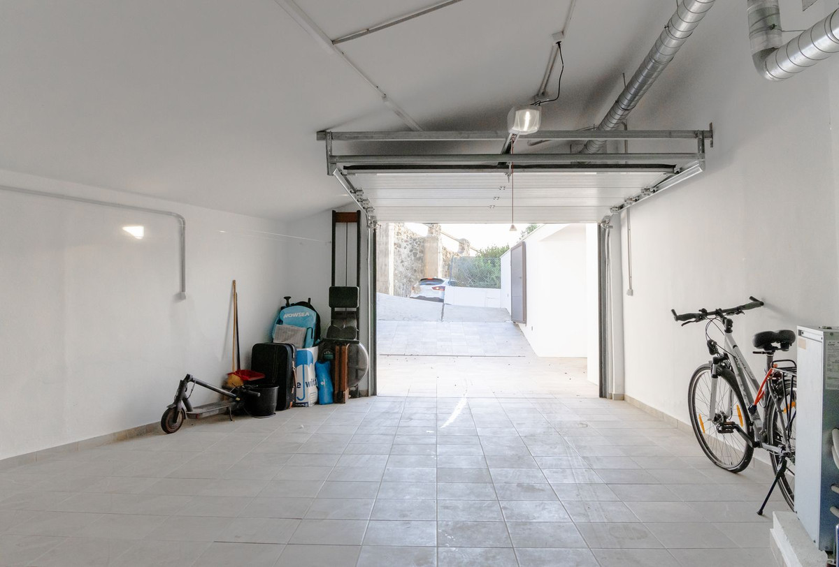 The staircase leads us to the main floor where there are 3 bedrooms, one of which is currently a living room/bedroom, the main one with an open bathroom and bathtub, and another bedroom en suite. This same floor offers us access to a large garage.