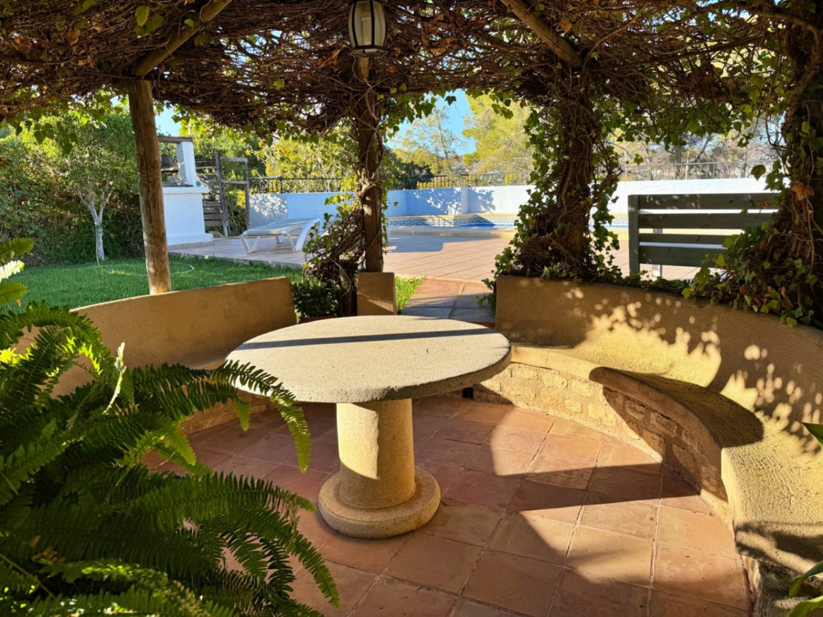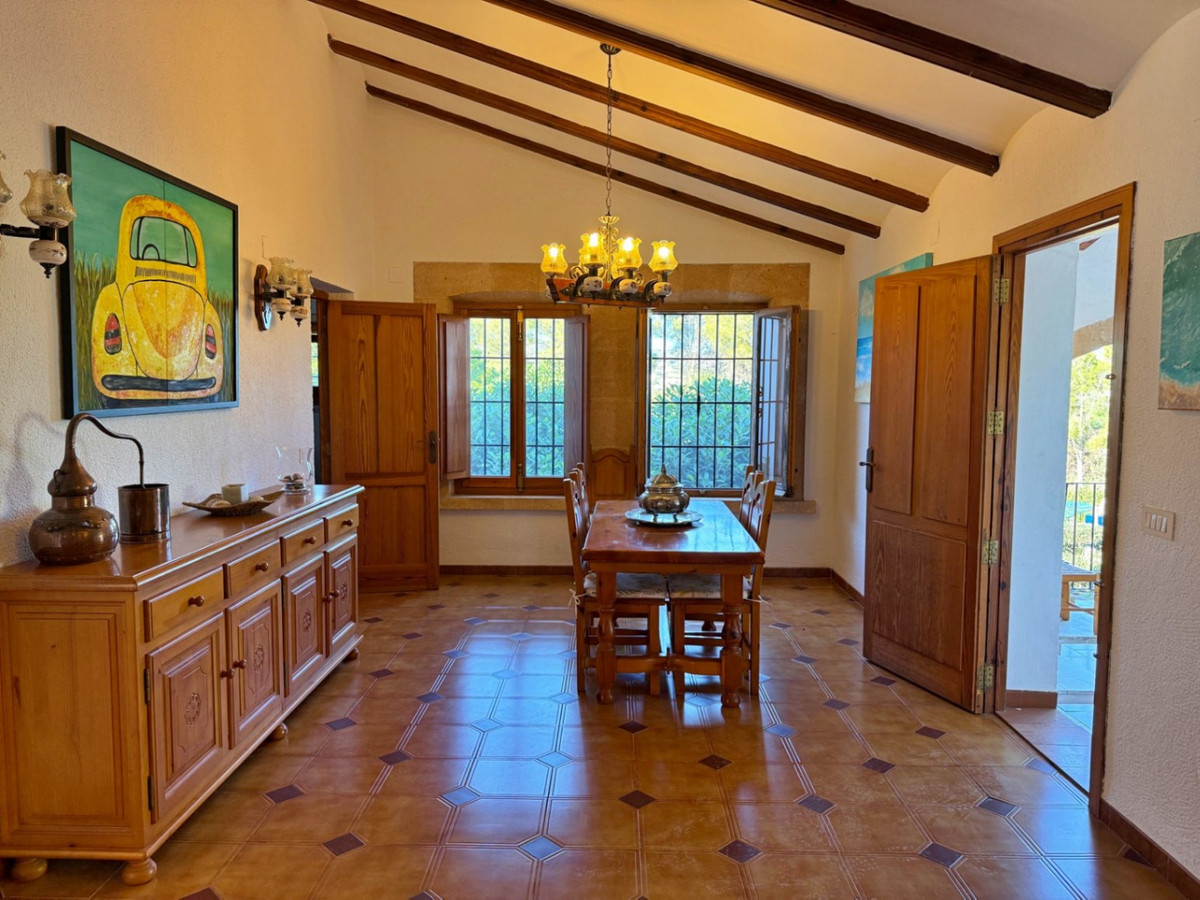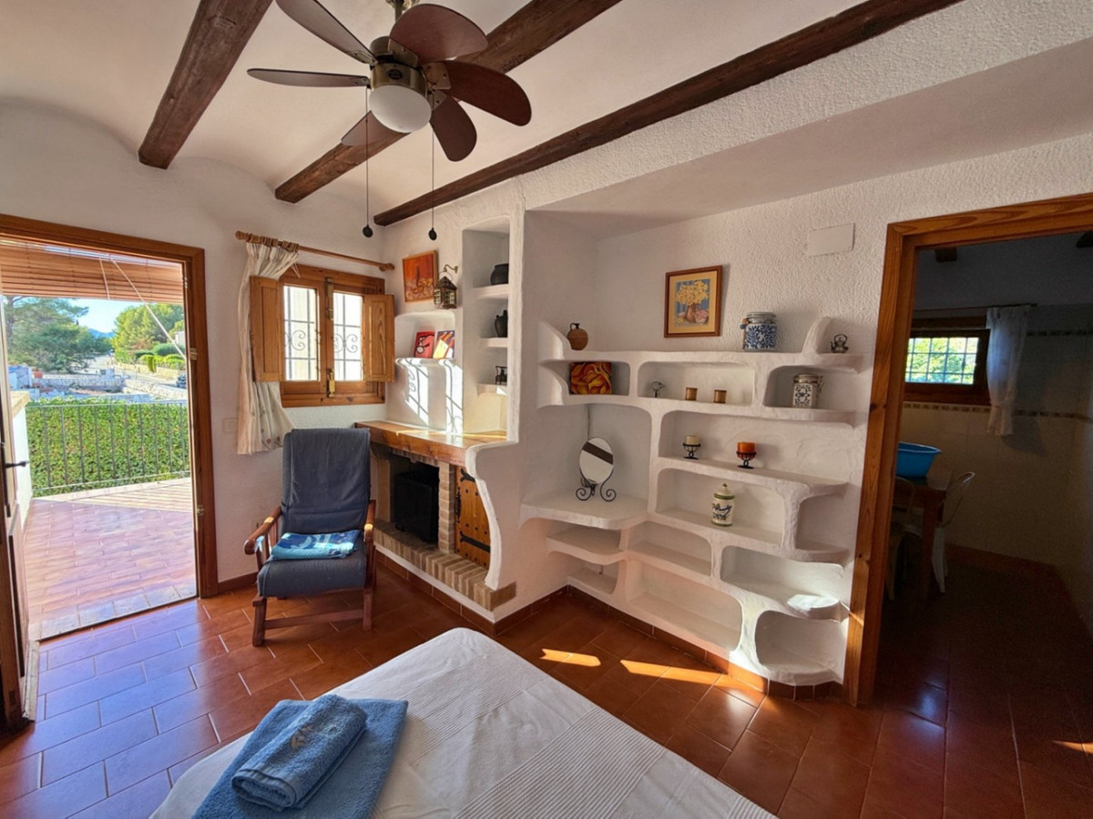 The main villa features 5 beautifully appointed bedrooms and is complemented by 2 completely self-contained apartments, providing flexibility for guests or potential rental income. The authentic Spanish design showcases charming details throughout, including cozy fireplaces and inviting terraces that enhance the home's warmth and character.