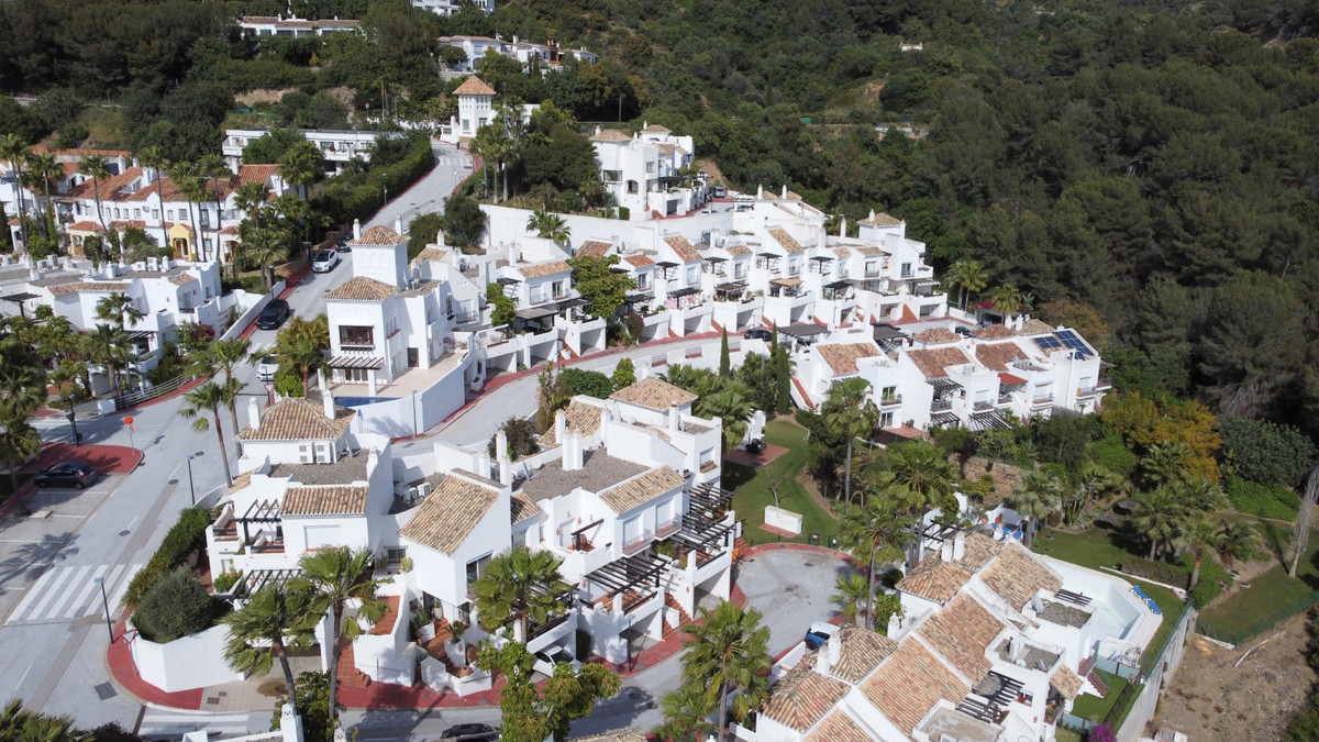 Situated just 9 mins from the Golden Mile and 10 into Puerto Banus, this is a small, unique development of just 59 townhouses, nestled into the foothills of the La Concha mountain in one of Spain´s biggest National Parks and overlooking the Istan lake. Perfect for those looking to get away from the hustle and bustle and yet just a short hop into the centre of it all. This south/west facing house has a spacious and bright living area with windows and patio doors leading out onto two separate terraces, partly refurbished with new bathrooms and the possibility of opening up the large kitchen to the living area. Off the kitchen is an internal patio ideal for a BBQ. The living room leads out onto the elevated terrace from which you look directly out over the stunning mountains and lake. The upper level has three double bedrooms including the master suite which also enjoys those lovely views as does the 2nd bedroom. The 3rd bedroom has access to a small private terrace area. The house has a large basement/garage area with more than enough room for two large cars and storage. The complex itself has a security barrier and is protected with CCTV, there is a lovely and peaceful pool area and gardens close by as well as a children's play area at the far end of the community. The white village of Istan is just an 11 minute drive away and is very popular with cyclists due to its outstanding beauty.