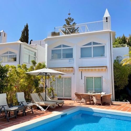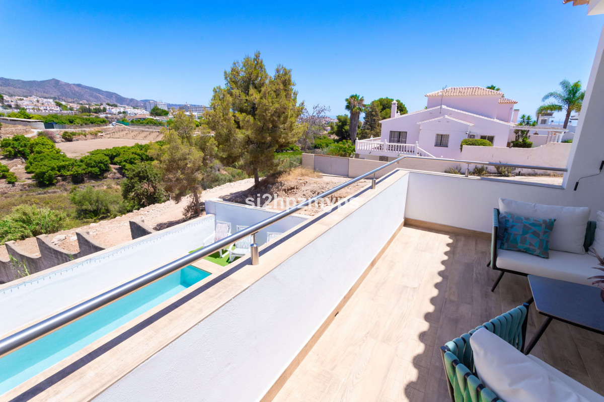 Completely renovated villa with pool and large terrace Welcome to this fully renovated, modern villa in La Exotica, Nerja. The villa offers plenty of space for guests or the large family. La Exótica, a residential area known for its peaceful surroundings, is located only 2 km from central Nerja and 10 minutes drive to the beach.