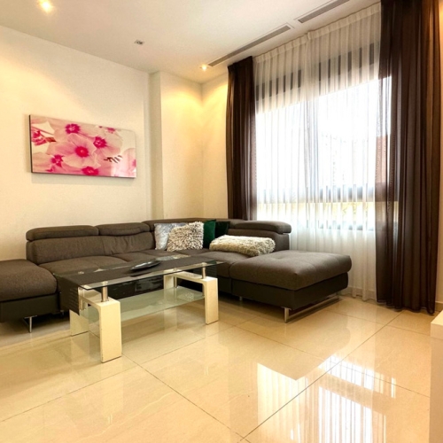 This modern resale property is brand new and has been designed for wheelchair use, the sliding patio doors have no ledges so easy access to the large terrace and 130 m2 garden which also has a large 40 m2 of artificial grass , the property is East & West facing and has an underground parking space with lift to the property. The property has two bedrooms and two bathrooms, one of which is en-suite. The complex has a large communal garden and a beautiful infinity type pool with jacuzzi and sun lounges. There is also a gym and sauna.