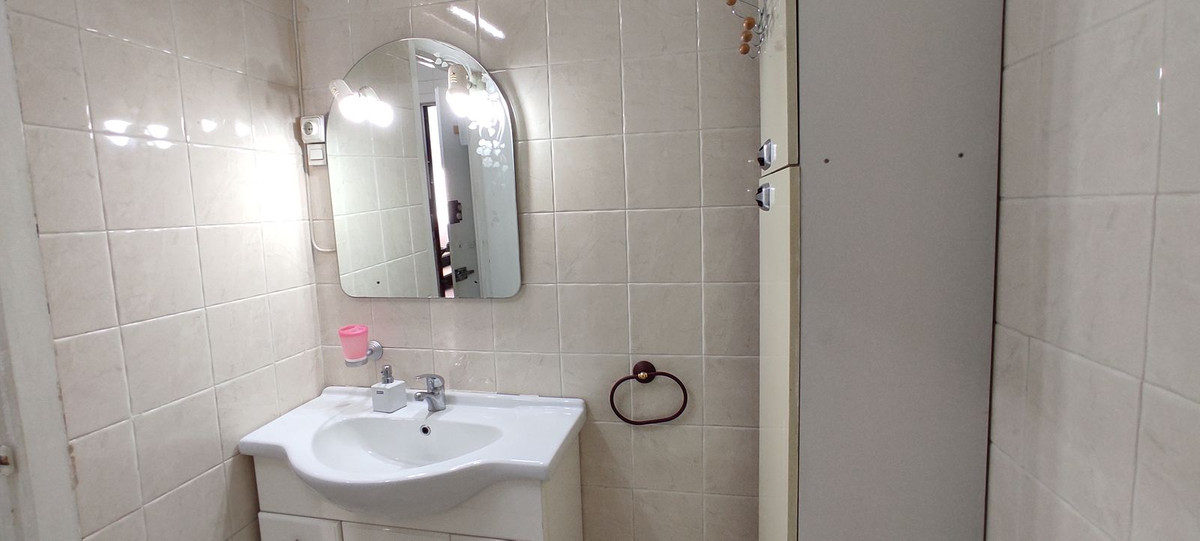 The owner has made a division with aluminum closures, which allows for a separate bedroom, providing greater privacy and comfort. Although the studio needs renovation, this gives you the opportunity to design it to your style and turn it into the home of your dreams.