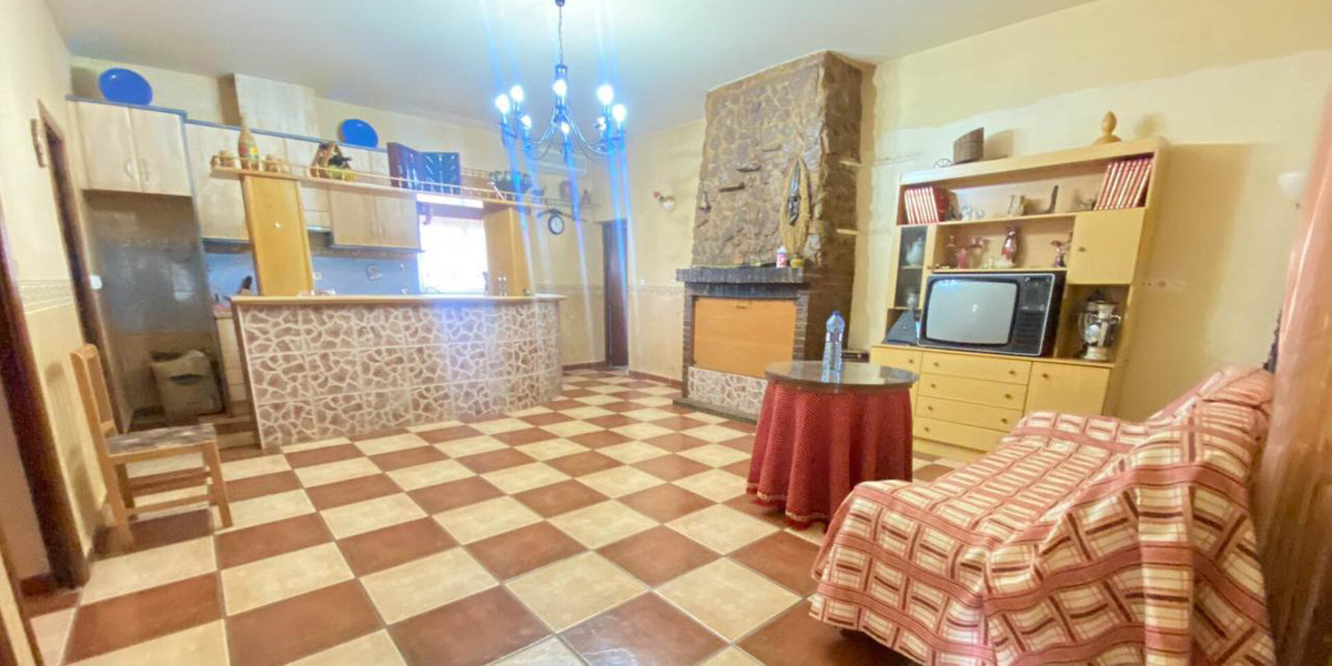 Spacious villa of 283 m² with two floors set in the centre of a 7,096 m² fenced plot in walking distance from amenities of Jumilla town. The first floor is ready to move in, it features stylish salon with a fireplace and a bar, 3 bedrooms and a bathroom to finish. The second floor is a renovation project to finish, it could offer another 2 bedrooms with a separate entrance, which needs to be added. The plot is planted with irrigated olive trees, providing a nice landscape and an agriculture production. The property also features a garage and various outbuildings for storage. The covered porch and the courtyard offer cosy shaded resting area.Due to its size and proximity to the town, yet quiet location with stunning views on the Jumilla castle, the plot could be used for touristic ventures. The villa is connected to mains electricity and has access to irrigation water. The access is via comfortable tarmac road.