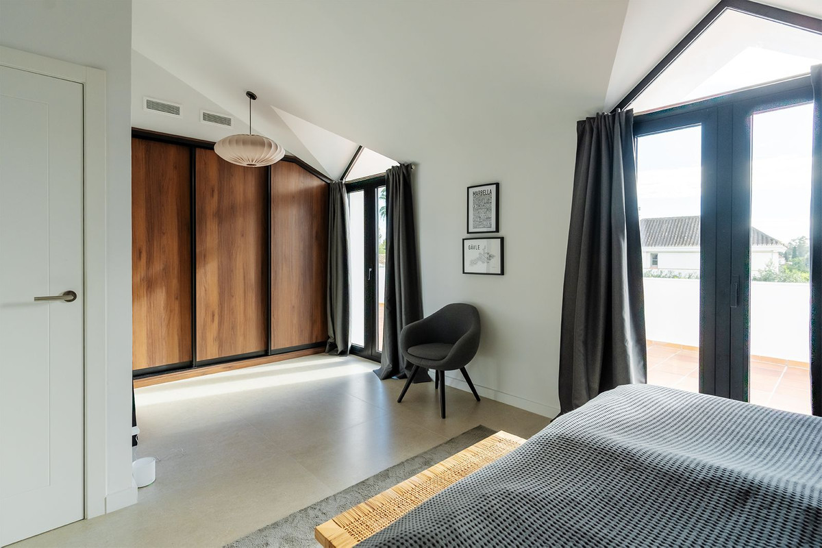 Upper floor with two bedrooms en-suite and a balcony that is accessible from both rooms with a lovely view where you can sense La Concha and Los Naranjos golf course.