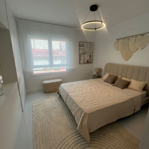 Upon entering the apartment through the new handcrafted security door in pinewood you come straight into the hallway with lots of wardrobe space. As you proceed you are then welcomed by a stunning kitchen island that is harmoniously integrated with the living area and the terrace, giving the impression that it is part of the living room. Enjoy the peaceful views from the living room where sunlight pours in to fill everysquare inch. The choice of materials and colour infuses this area with a sense of peace and comfort.