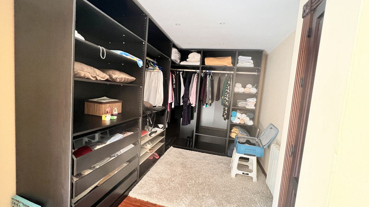 Upstairs, the master bedroom boasts an en-suite bathroom, a walk-in closet, and air conditioning for added comfort. Two additional bedrooms share a well-appointed bathroom.