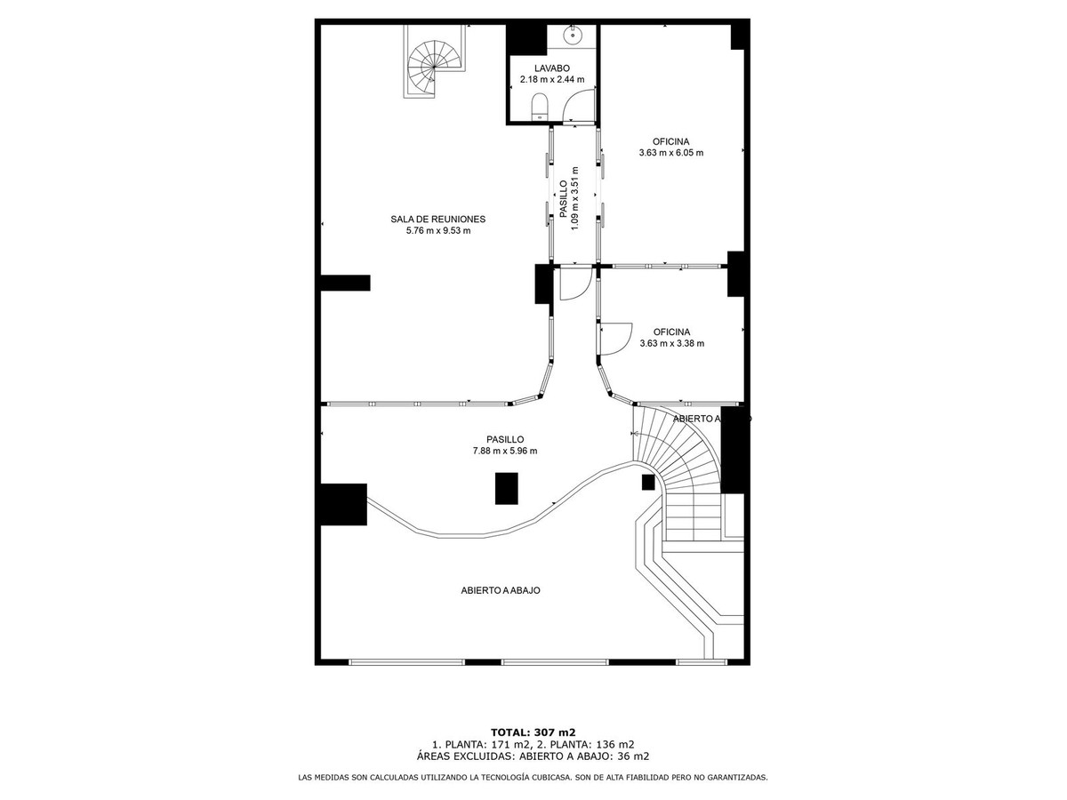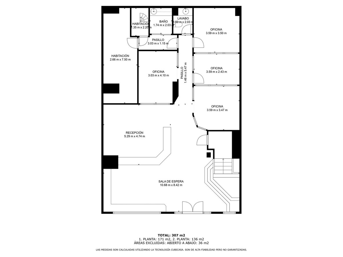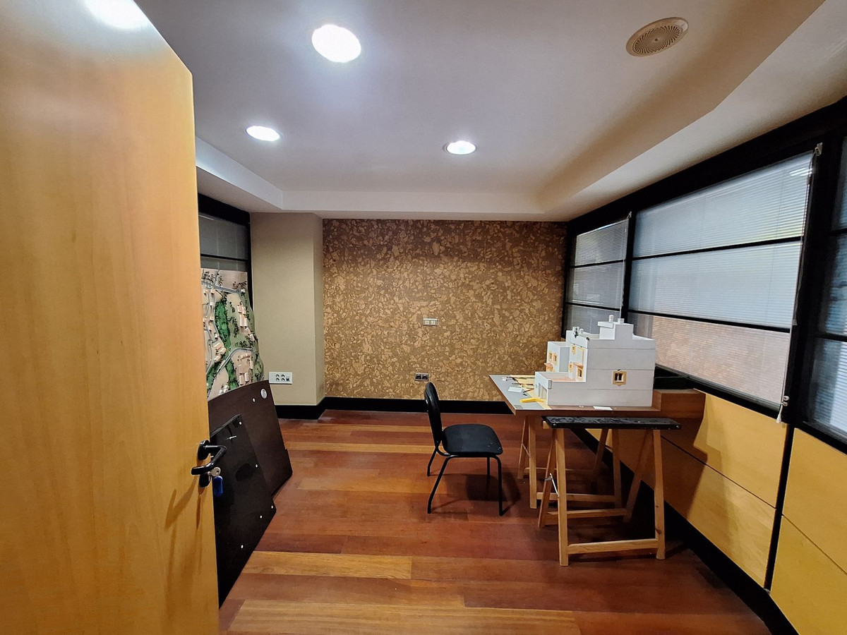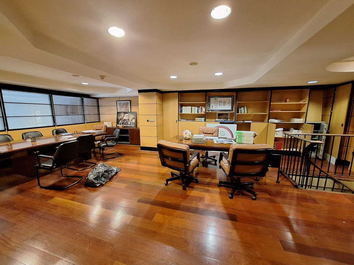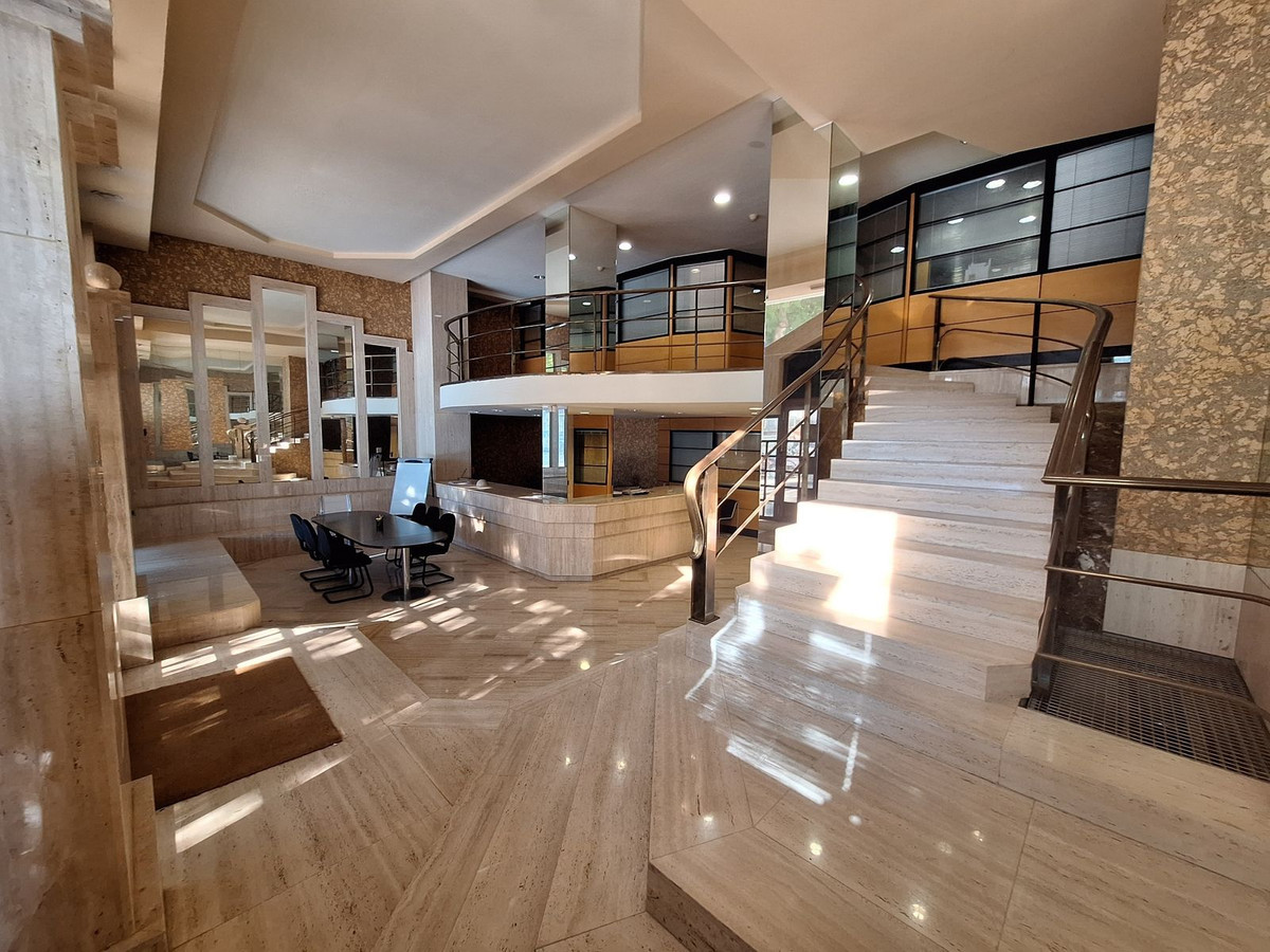 The interior built area of this establishment is more than 307 m2 distributed over two levels. On the ground floor there is a majestic entrance with space for a large meeting/presentation table and a wide staircase leading to the upper level. On this same ground floor we have a reception area, 4 offices, a large archive, a kitchen and a bathroom, all with a total surface area of 171 m2.