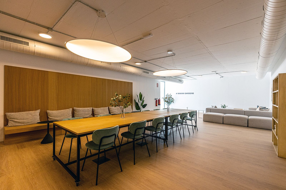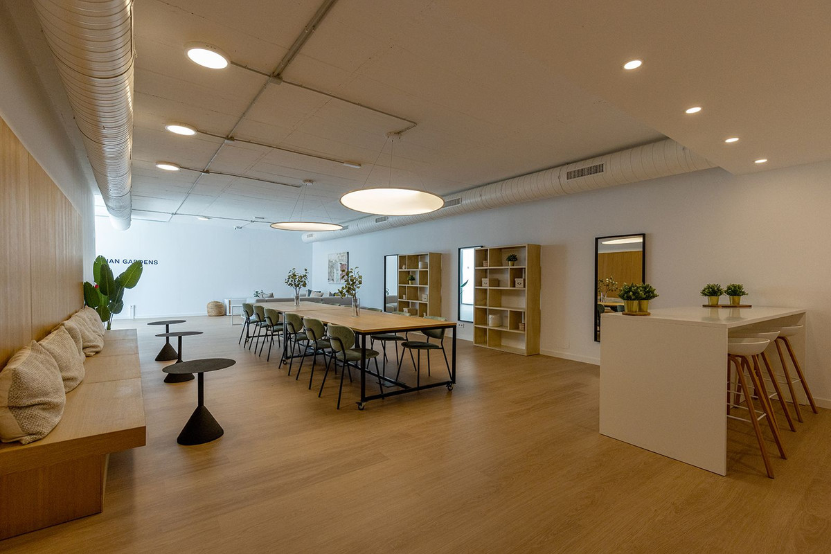 The rooms boast high ceilings and sliding windows opening onto the spacious terrace.
