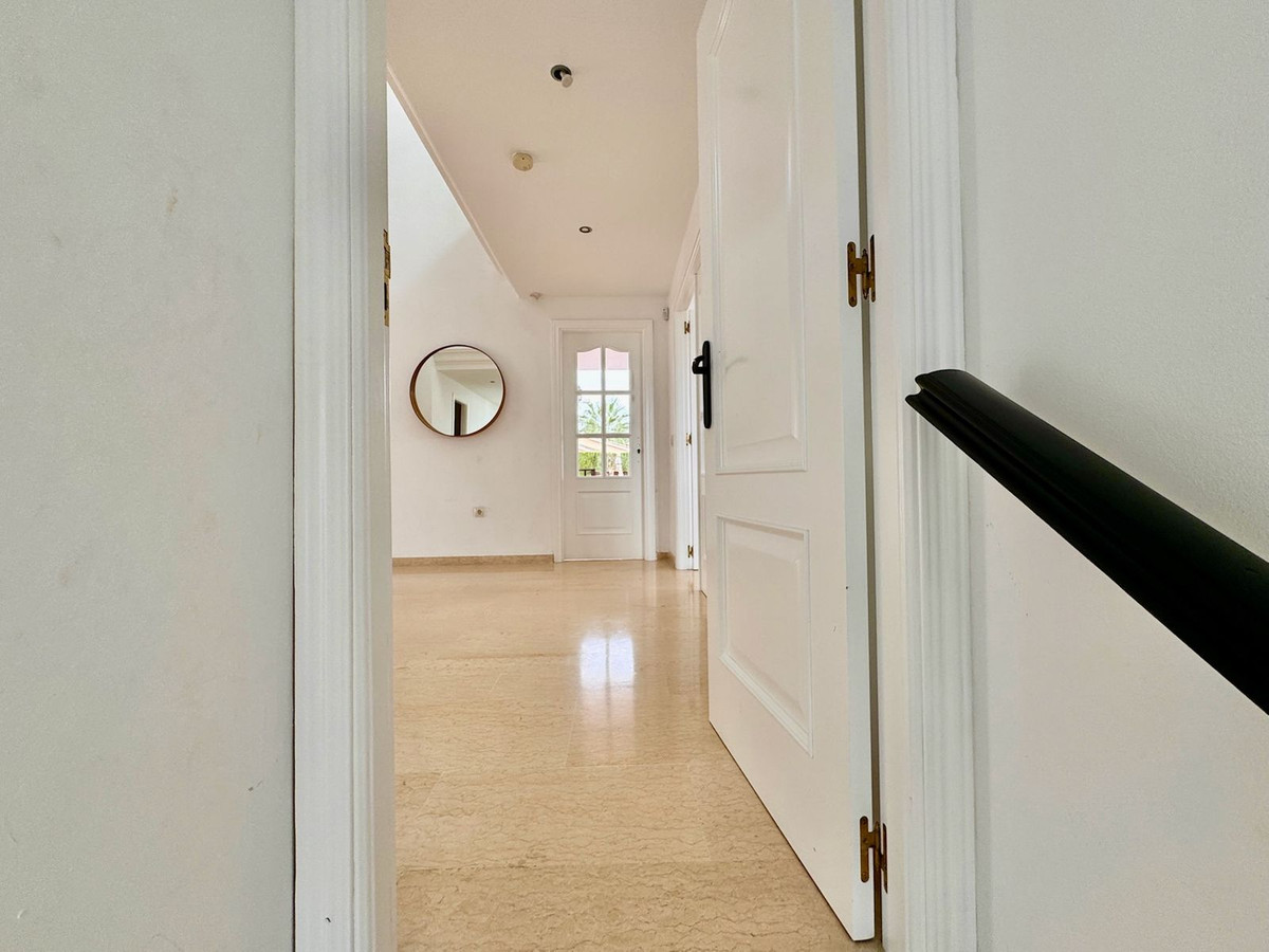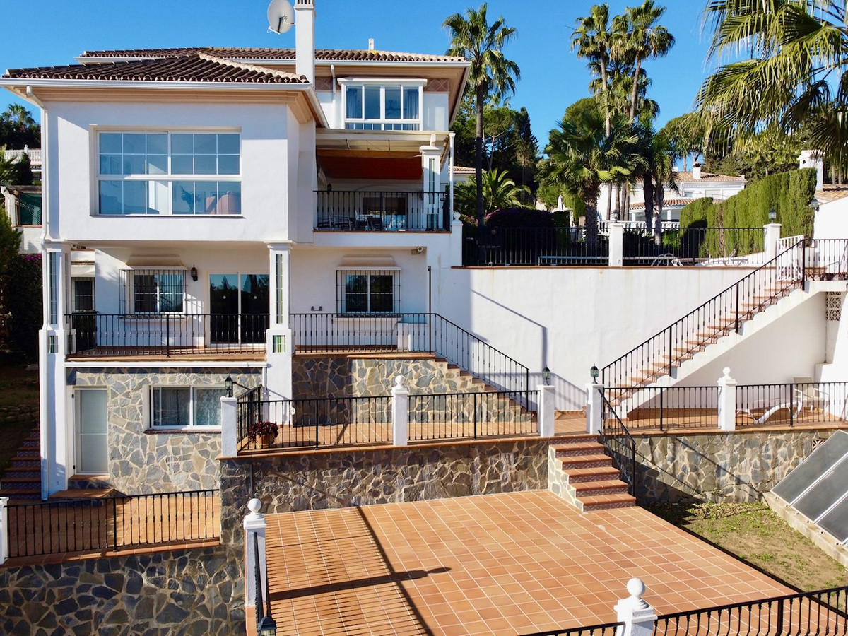 In the beautiful and attractive town on the Costa del Sol, La Cala de Mijas (Torrenueva), you will find this fantastic three-story villa with views of the Mediterranean Sea and Spain's Costa del Sol. Just half an hour from Malaga airport by car, you drive two minutes from the main road up towards the mountain and enter a large entrance hall with high ceilings, from where you have access to the villa's bright ground floor and upper floor, lower floor, stylish kitchen, living room with high ceilings, swimming pool and lovely terrace. With a total of 6 bedrooms ( 3 ensuits )4 bathrooms, 1 guest toilet , 2 Living rooms, two kitchens, two entrances, a garage with space for one car and a double garage with space for two cars, there is guaranteed room for the whole family and friends. The home can be divided, with a separate lower floor with three bedrooms, three bathrooms, private entrance and double garage, kitchen and living room. For example, you can have two families stay, rent the home to two families, or rent it to one family, while you yourself stay separately in the villa, with separate garages and entrances from two different streets. On the ground floor you will find one room and one bathroom with living room, kitchen, terrace and pool. If you go up to the first floor, you will find two en-suite bedrooms, where you can wake up with a view of the Mediterranean Sea. The location is absolutely top! Walking distance to some of the best beaches on the coast, the sea, shops, restaurants and driving distance to popular areas such as Marbella and Málaga The villa is centrally located, where you don't hear city and road noise, but get the most beautiful views of various other villas, natural areas, mountains and sea That way you are private, but close to everything . Book a viewing and experience this bright, spacious and beautiful three-story villa with your own eyes