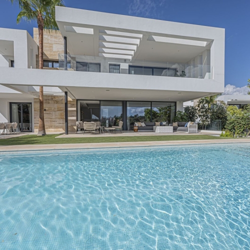 This exceptional villa is nestled within an exclusive gated community in Marbella's prestigious Golden Mile. Set on a generous south-facing plot, the property is bathed in natural sunlight and enjoys breathtaking panoramic sea views from both floors, creating a serene and luxurious coastal retreat.