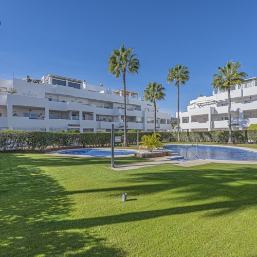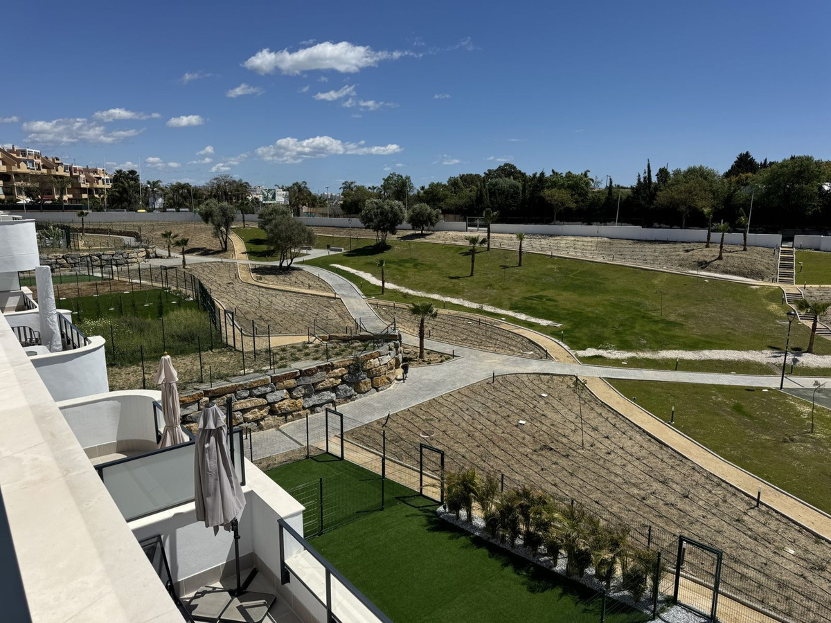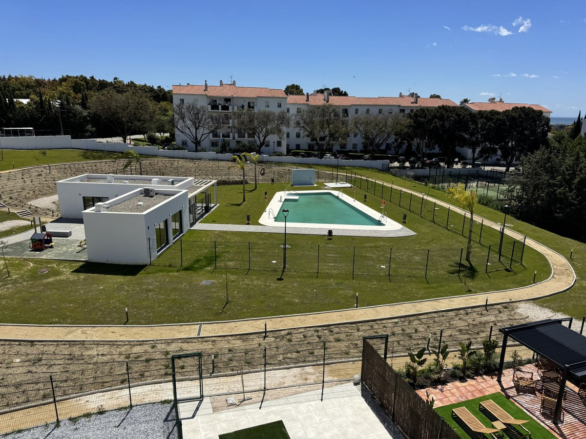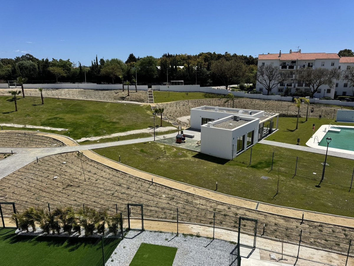 New residential complex with modern flats and penthouses close to golf in Estepona, located in a gated community, adjacent to La Resina Golf Club and a 5-minute drive to the beach.