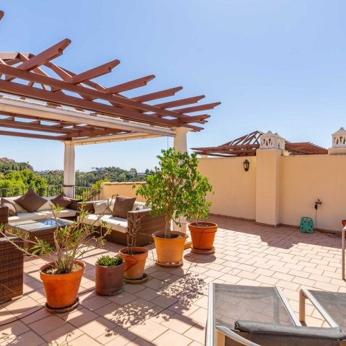 Large private terrace, ideal for enjoying the spectacular panoramic sea views and Mediterranean sunsets.