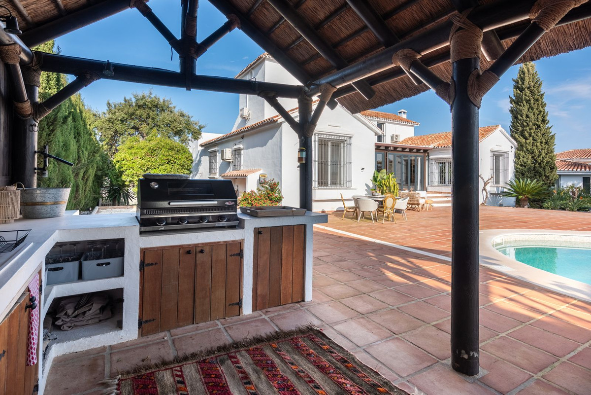 This stunning family villa was designed by renowned Spanish architect and built with the highest quality materials, seamlessly blending traditional Spanish elements with modern standards. Recently renovated to the highest specifications, the villa exudes vintage charm while offering elegant, contemporary design that reflects the distinctive style of Southern Spain.