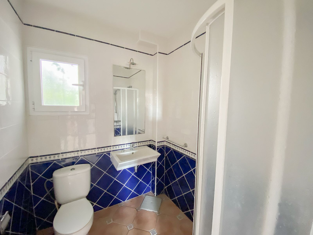 The property features a classic design with a spacious living room distributed on two levels and a separate kitchen. It currently has three bedrooms, all with en-suite bathrooms, and enough space to add a fourth bedroom after a renovation. Spacious terraces and a winter garden bring natural light and versatility to the living space, while the living room, with its cozy fireplace, is perfect for cooler evenings. The master bedroom is located upstairs and has a spacious bathroom and a private terrace. The entire house is equipped with air conditioning for added comfort.