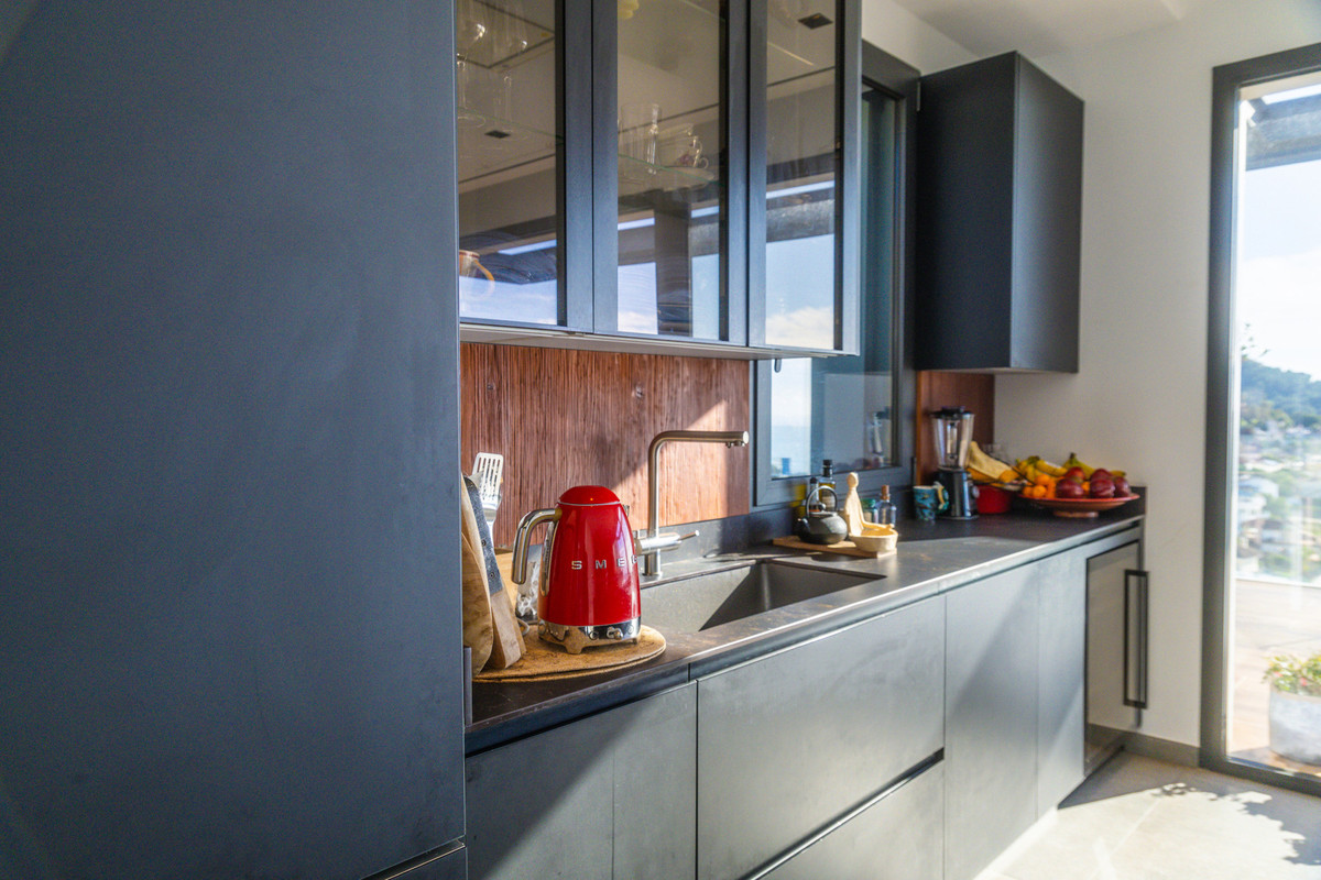 From the generously sized terrace, enjoy breathtaking views of the sea, mountains, and countryside.