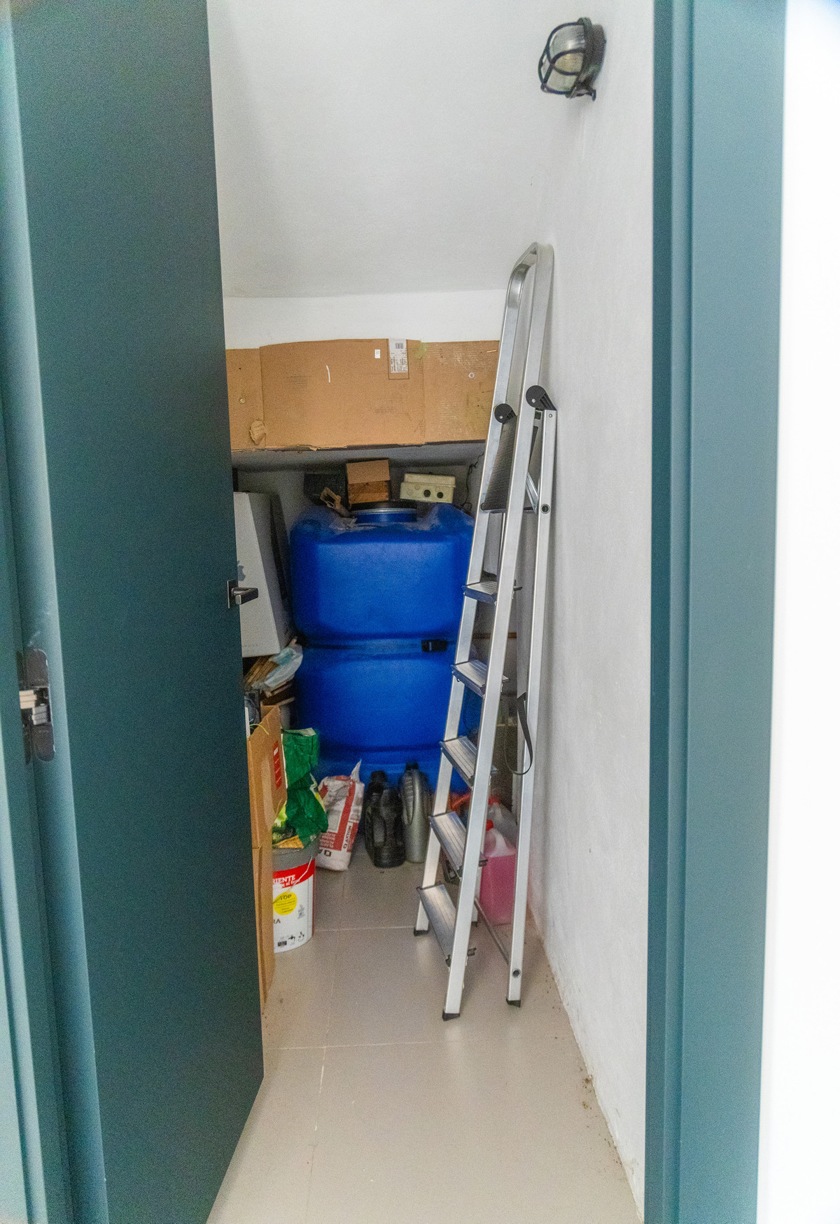 The property boasts a beautifully landscaped garden with mature fruit trees, perfect for relaxation and outdoor gatherings. Additional amenities include a private swimming pool, a spacious garage with two parking spaces, an outdoor staircase, and a dedicated storage room.