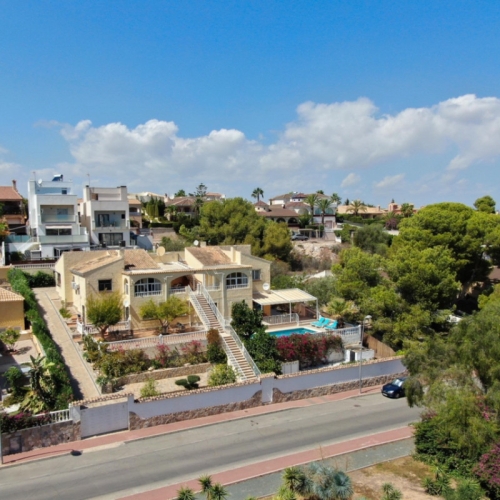 Elegant villa with pool, veranda and view of the salt lake Welcome to this fantastic villa with an attractive location just outside the center of Torrevieja. Here you live close to the well-known salt lakes and the city's range of shops and restaurants. The large shopping center Habaneras is nearby and the Mediterranean Sea and nice beaches are a pleasant distance away. For those interested in golf, there are several well-known golf courses a short drive away.