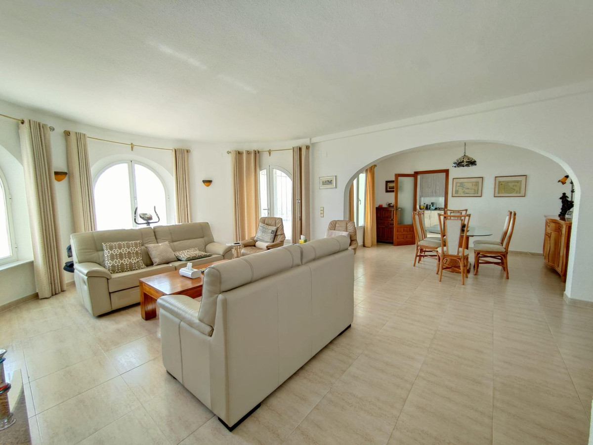 Discover this spectacular villa, unique in its style, located in the privileged area of Cumbre del Sol, Benitachell. This property stands out for its incomparable panoramic sea views, a dream setting that blends perfectly with the natural environment that surrounds it.The villa, designed on two floors, has 3 large bedrooms and 3 full bathrooms, with a distribution designed to make the most of natural light and stunning views from almost every room and the living room. Its architectural design integrates large windows that frame the sea horizon, creating an atmosphere of tranquility and luxury.Outside, the villa boasts a spectacular 10x5 meter pool, located right in front of the house and strategically oriented so that the water seems to merge with the horizon of the sea. This space, accompanied by a large terrace, is ideal for relaxing and enjoying the Mediterranean climate.The 1,163 m² plot offers a beautifully decorated garden, with a careful selection of plants and fruit trees that bring color and freshness. In addition, the property has a cozy living room with fireplace, perfect for enjoying cooler evenings in a warm and elegant atmosphere.Located just minutes from Cala del Moraig, the highway and essential services, this villa combines privacy and tranquility with excellent accessibility.If you are looking for an exclusive property where luxury and nature come together, this villa is a unique opportunity. Request a visit and let yourself be captivated by its magic!