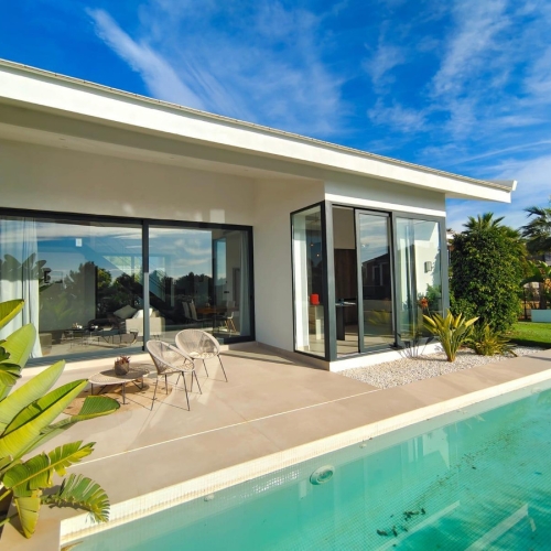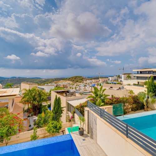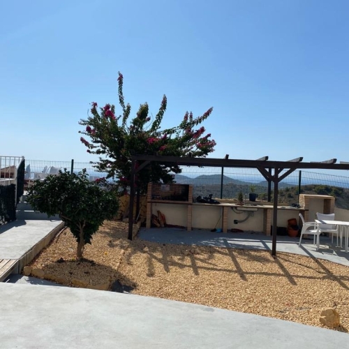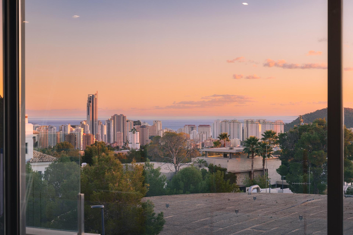 We present to you a spectacular villa located in the prestigious area of Sierra Cortina, where the mountains meet the sea, creating an ideal setting to live in harmony with nature. This home is perfect for those who value comfort, elegance, and exclusivity.Main features: • Living area: 514 m² • Plot: green garden with a pool and relaxation areas • Layout: 5 bedrooms, 4 bathrooms, spacious kitchen-living room • Additional spaces: basement with a 2-car garage, workshop, office, library, relaxation area, and a large walk-in closet Interior and amenities: • Spacious kitchen-living room with natural materials such as light marble and wood • Panoramic bedrooms with views of the sea, terraces, and the lights of Benidorm • Modern climate control system: underfloor heating, air conditioning, special summer curtains • Soft lighting and minimalist design that create a cozy atmosphere Exterior and relaxation areas: • Green garden with palm trees and pool • Barbecue area and space for entertaining guests • Private corners for resting and recharging Basement: An ideal space for men: garage, workshop, office, library, bedroom, and relaxation area with a private bathroom and walk-in closet.This villa is not just a house, but a place where every detail has been carefully designed for you to enjoy life, relax, and inspire your creativity.