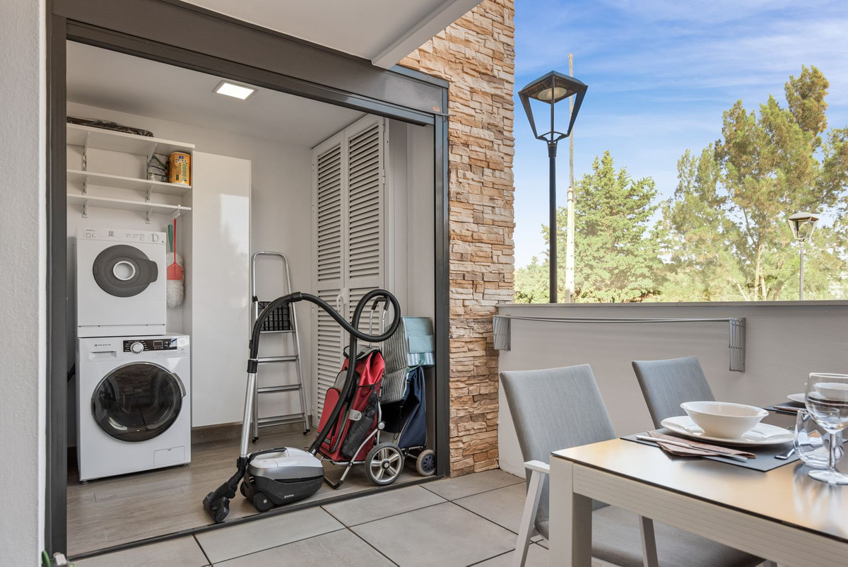 Spacious and sunny elevated ground floor corner apartment. With an ideal south and east orientation you are first line to the La Noria golf course and a flat, easy walk into La Cala town and beach. Completed in 2019, this was the show home for the development and was designed and furnished to a very high standard. The property is in amazing condition, with little use and additional improvements/ upgrades made by the current owners.