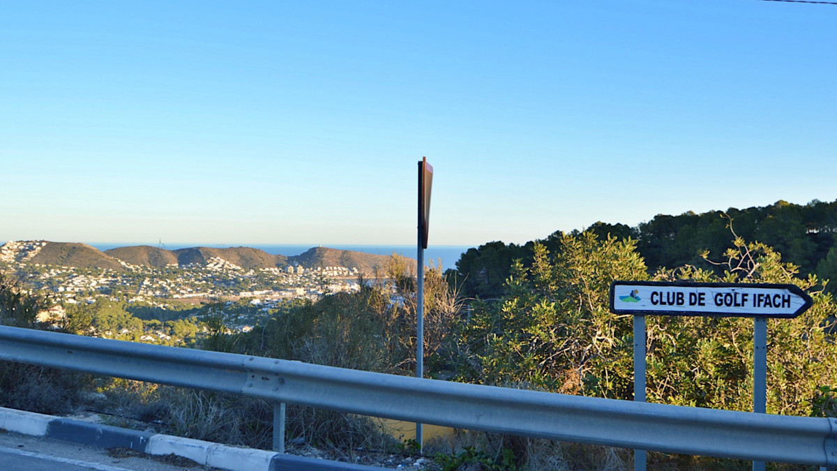 This 27. 000m2 plot sits at the end of a horseshoe shaped valley overlooking the pretty coastal town of Moraira and the sea beyond.