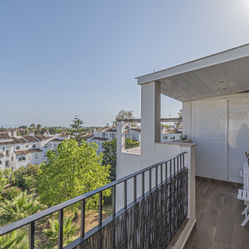Via the kitchen we get up to the crown jewel of the apartment, the large roof terrace with fantastic views. The obvious place to spend time with family and friends, quality of life at its best.