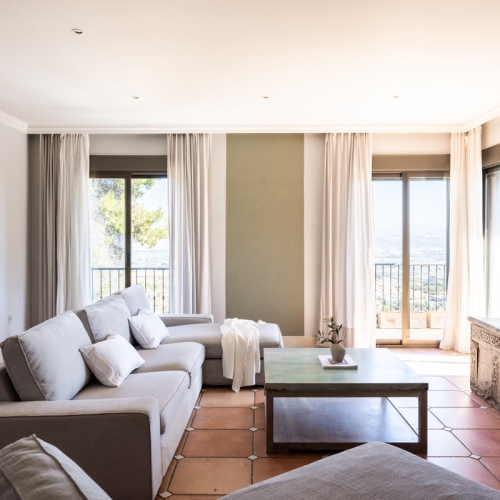 Townhouse for sale in Lauro Golf one of the most prestigious golf courses in Malaga. The property is distributed over three floors. On the ground floor there is a fully equipped kitchen, a toilet, a large living room with a fireplace that leads to a private terrace. On the upper floor there are two en-suite bedrooms and on the top floor there is a third bedroom with a terrace with wonderful views of the golf course. Private parking space and storeroom. Communal gardens a pool. A unique purchase opportunity not to be missed.