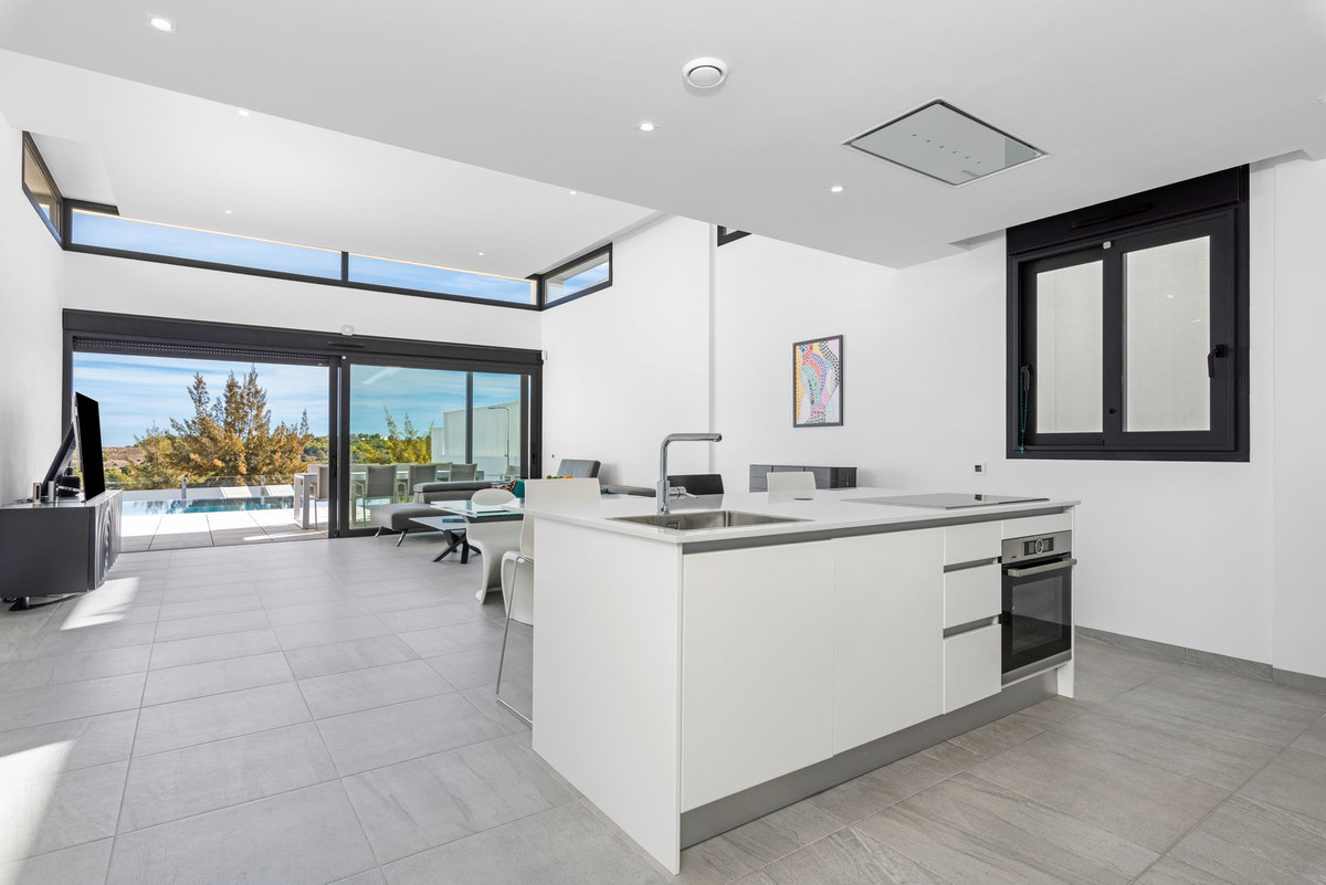 This luxury villa really is walk in ready and is waiting to wow you! This stunning villa is less than a 5 minutes' drive from the vibrant town of San Miguel de Salinas where you can find all the amenities that you require. Sought after Spanish schools, 24hr medical centre, church square, banks, pharmacies, municipal pool, football ground and a fantastic selection of local and international bars and restaurants. As a Spanish town it celebrates the many colourful fiestas throughout the year and there is a weekly produce market on a Wednesday. If golf is on your agenda, then you will not be disappointed with the award winning Las Colinas golf course only a few minutes' drive, and a further 4 prestigious golf courses less than a 10-minute drive. The fabulous sandy coast line of the Orihuela Costa is 12 minutes away by car as is a very popular and large shopping mall, Zenia Boulevard, where you can shop to your hearts content.