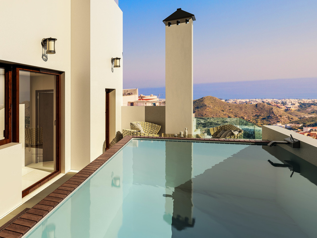 Mojacar Pueblo is a beautiful traditional Spanish village with lots of amenities to enjoy such as Bars, Restaurants, local food shops, Church, Town Hall etc. There is a good local bus service that will bring you down to the coastal area of Mojacar Pueblo, again with lots of amenities to enjoy in addition to the outstanding beaches, stretching towards Garrucha in one direction and Carboneras in the other.