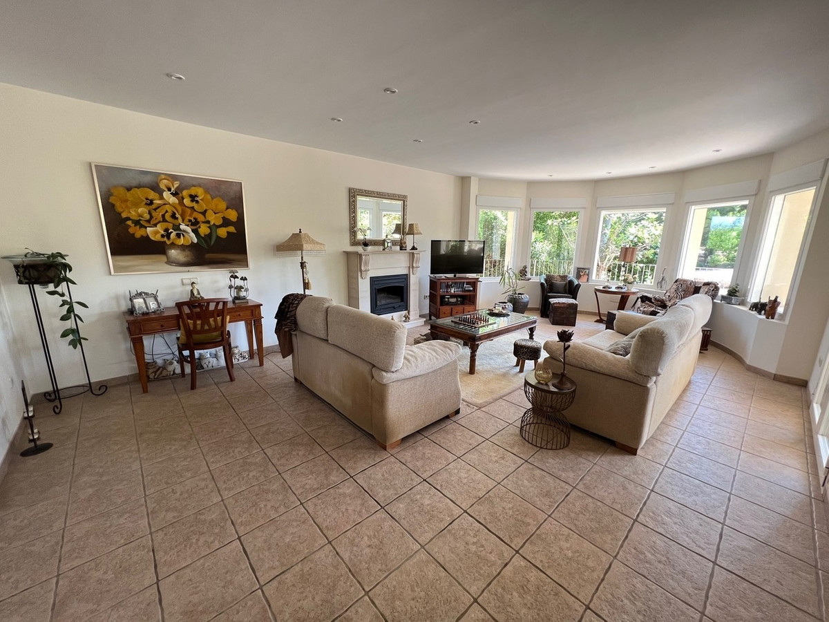 This is a lovely bright and airy space with a feature electric fireplace, curved front wall with large windows and electric shutters, full size dining table and underfloor heating and cooling system throughout.
