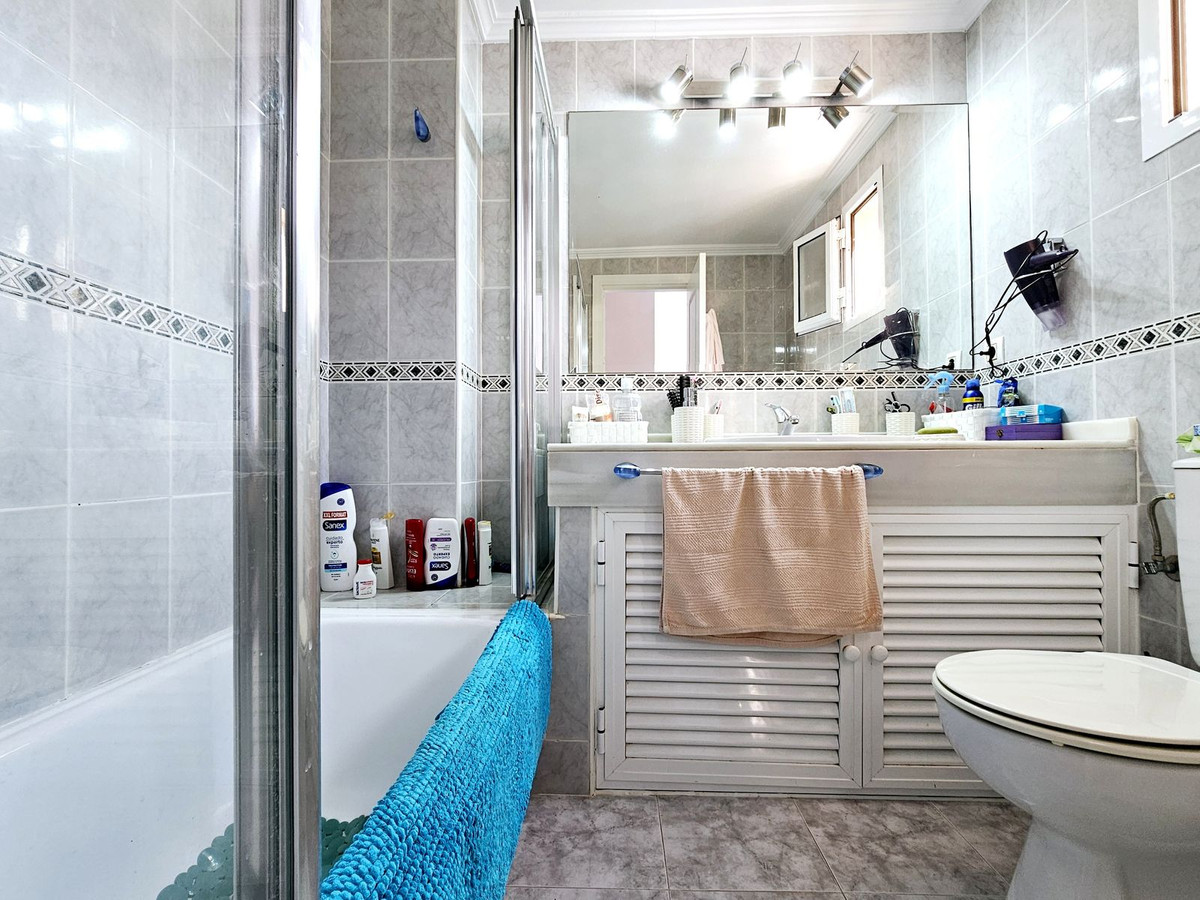 On the first floor you will find a split level with 2 guest bedrooms that share a full family bathroom, and the master bedroom with an ensuite bathroom. All bedrooms are double bedrooms with fitted wardrobes, shutters and blinds. Up one more level you will find the private 25m² roof terrace with beautiful mountain, garden and sea views from where you could sunbathe all year round in complete privacy. There is also a very good sized storage room on the solarium.