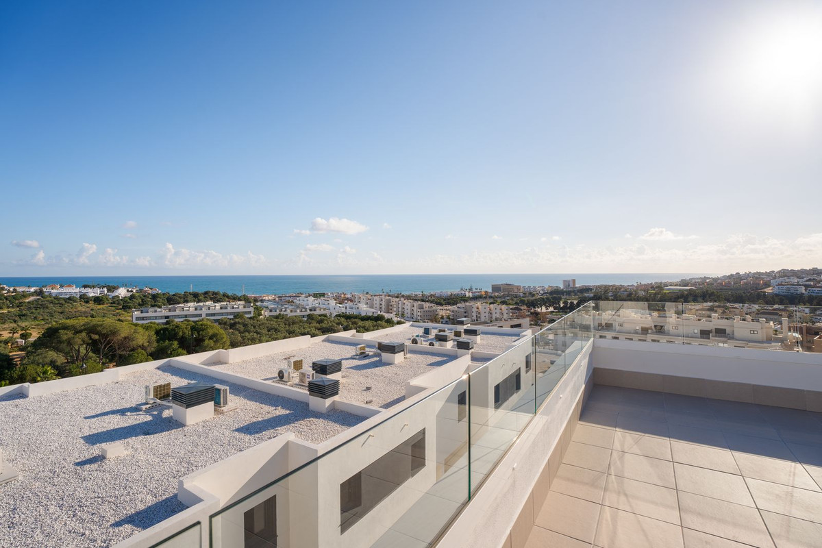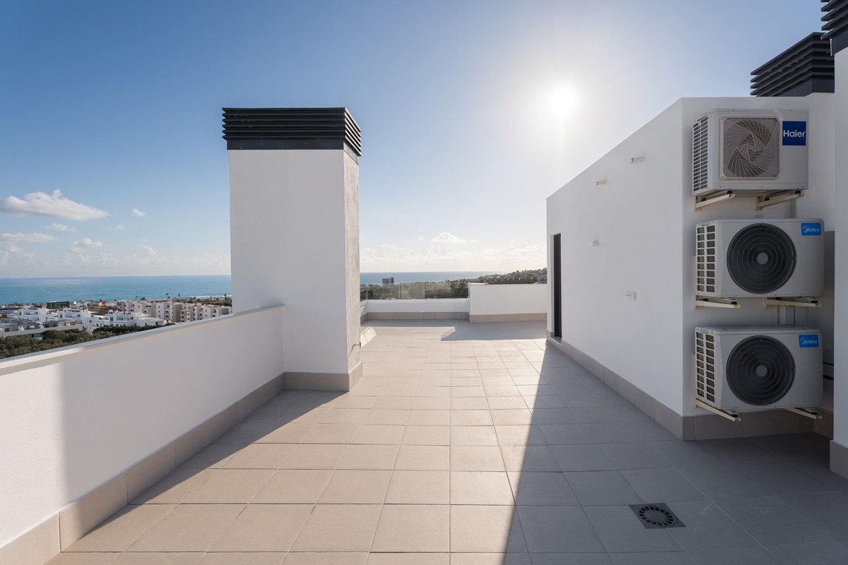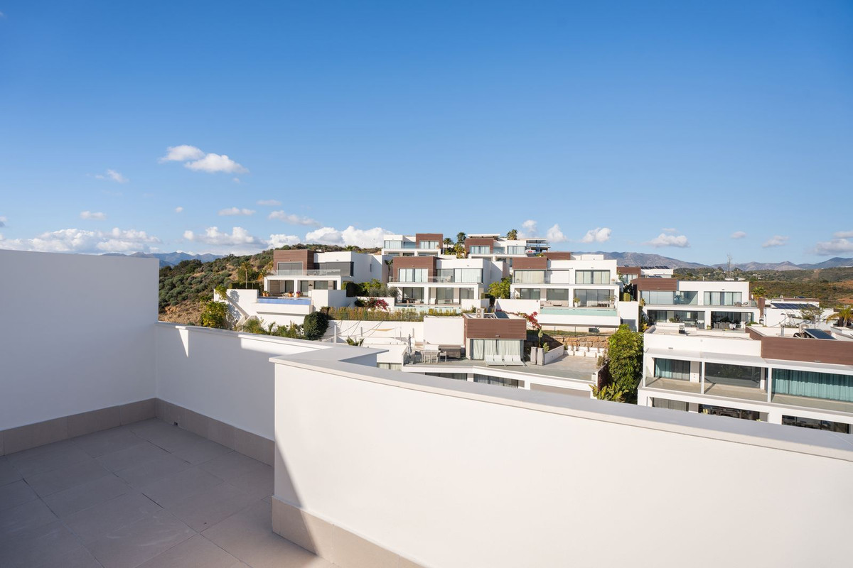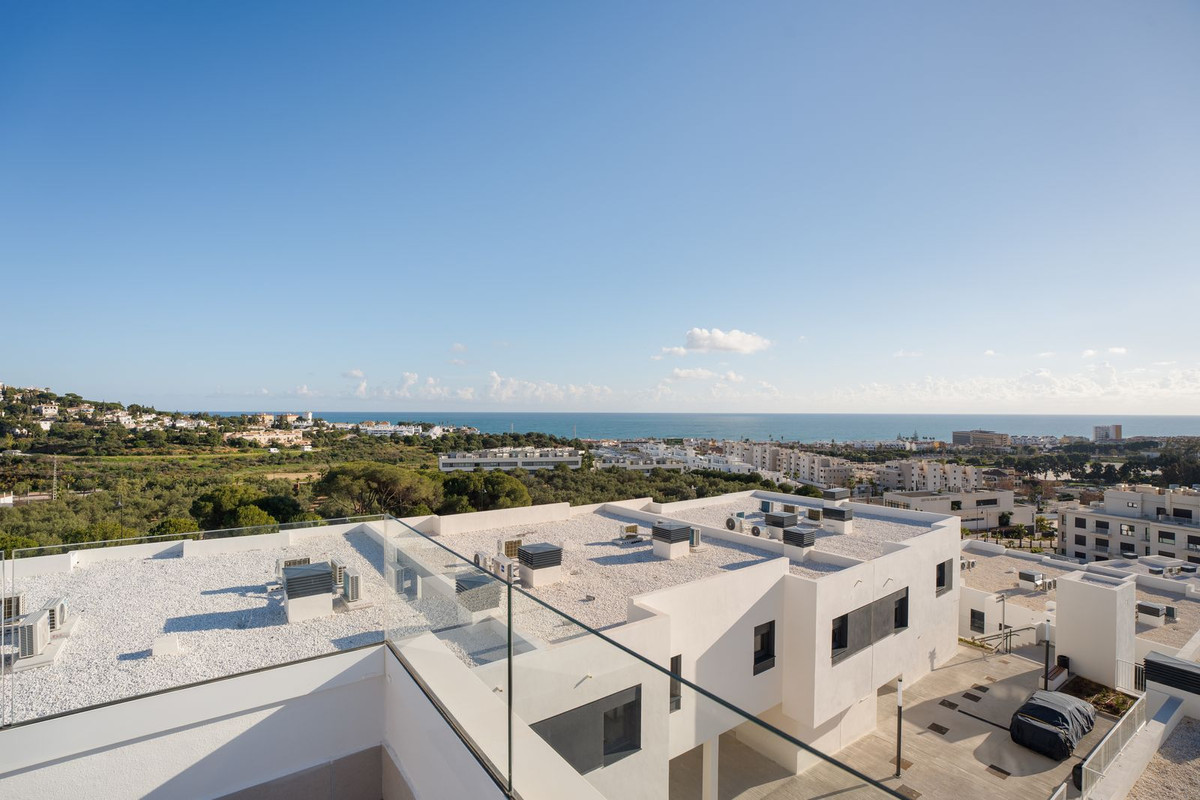 Welcome to this exceptional 4-bedroom, 3-bathroom corner townhouse in Serena Village, one of the most sought-after gated urbanizations in the heart of La Cala de Mijas. Recently completed, this development offers an unrivaled blend of cutting-edge design, top-tier materials, and luxury finishes. Situated on the higher levels of the urbanization, this home enjoys panoramic sea views from every level, culminating in an expansive rooftop solarium where you can soak in the vistas while basking in the sun.