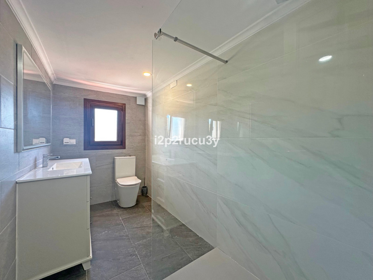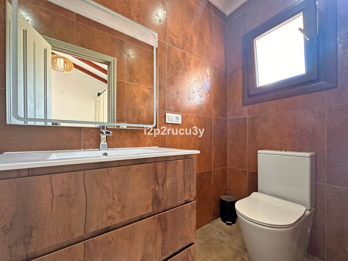 Descending from the kitchen, you'll find a cozy lounge or dining space, which connects to one of the villa's bedrooms. The main lounge is also accessible from the kitchen and offers easy access to another bedroom and a separate guest shower room. Stairs from the main lounge lead up to two more bedrooms that share a convenient Jack-and-Jill style shower room.