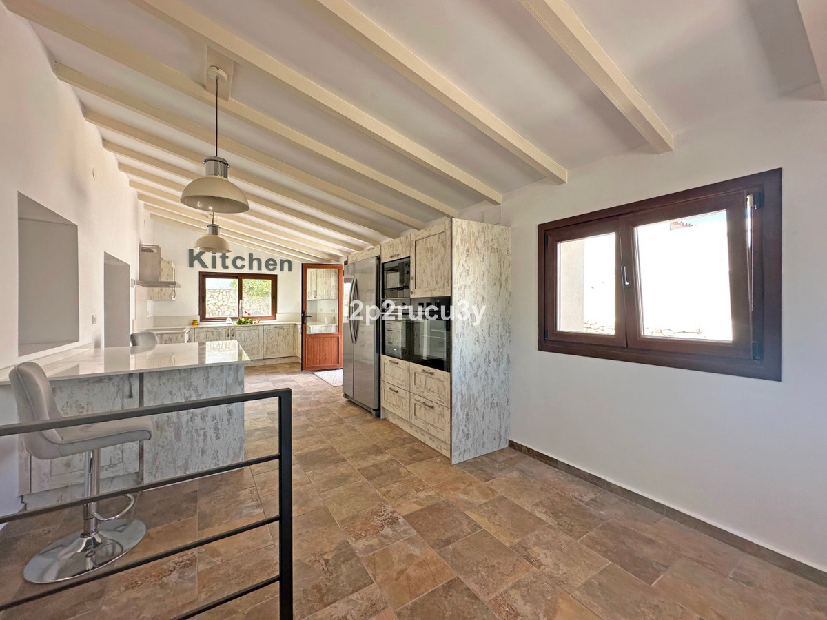 This beautiful villa, located in the sought-after area of Moraira, offers a fantastic opportunity for those seeking a family home or investment. Upon entering the property, you'll find ample parking and access to the main living areas via a generously sized, modernized family kitchen. From here, stairs lead up to the master bedroom, complete with an en-suite bathroom and private terrace.