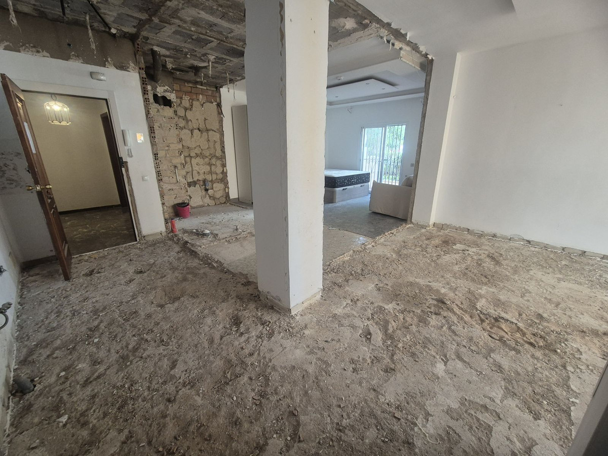 Currently, it is being sold at a reduced price without walls. If you would like the apartment fully finished, beautiful, and brand new, this can be negotiated. You will pay for the renovation as part of the sale price, estimated at €70,000, to build 2 bedrooms and 2 full bathrooms. Please see the plans. It has a building license and everything is legal.