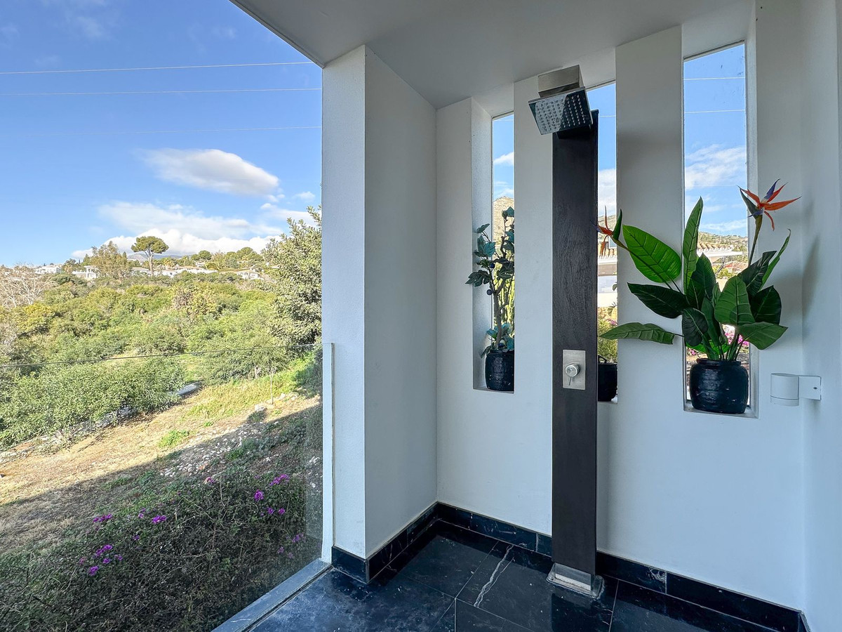 This exceptional house is a dream come true, where modern design meets natural beauty. With its bright and open atmosphere, combined with sophisticated dark details, the property offers a perfect balance of elegance and comfort. From the large windows, you can enjoy the spectacular sea views stretching out to the horizon, creating a calm and peaceful atmosphere throughout the villa.