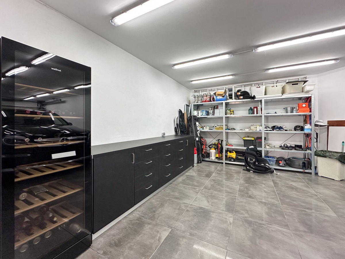 The garage is spacious and can accommodate up to four vehicles. It also functions as a utility room where you'll find both washing machine and dryer. The garage is really something else! Bright and spacious, and will stay dry even under heavy rain.