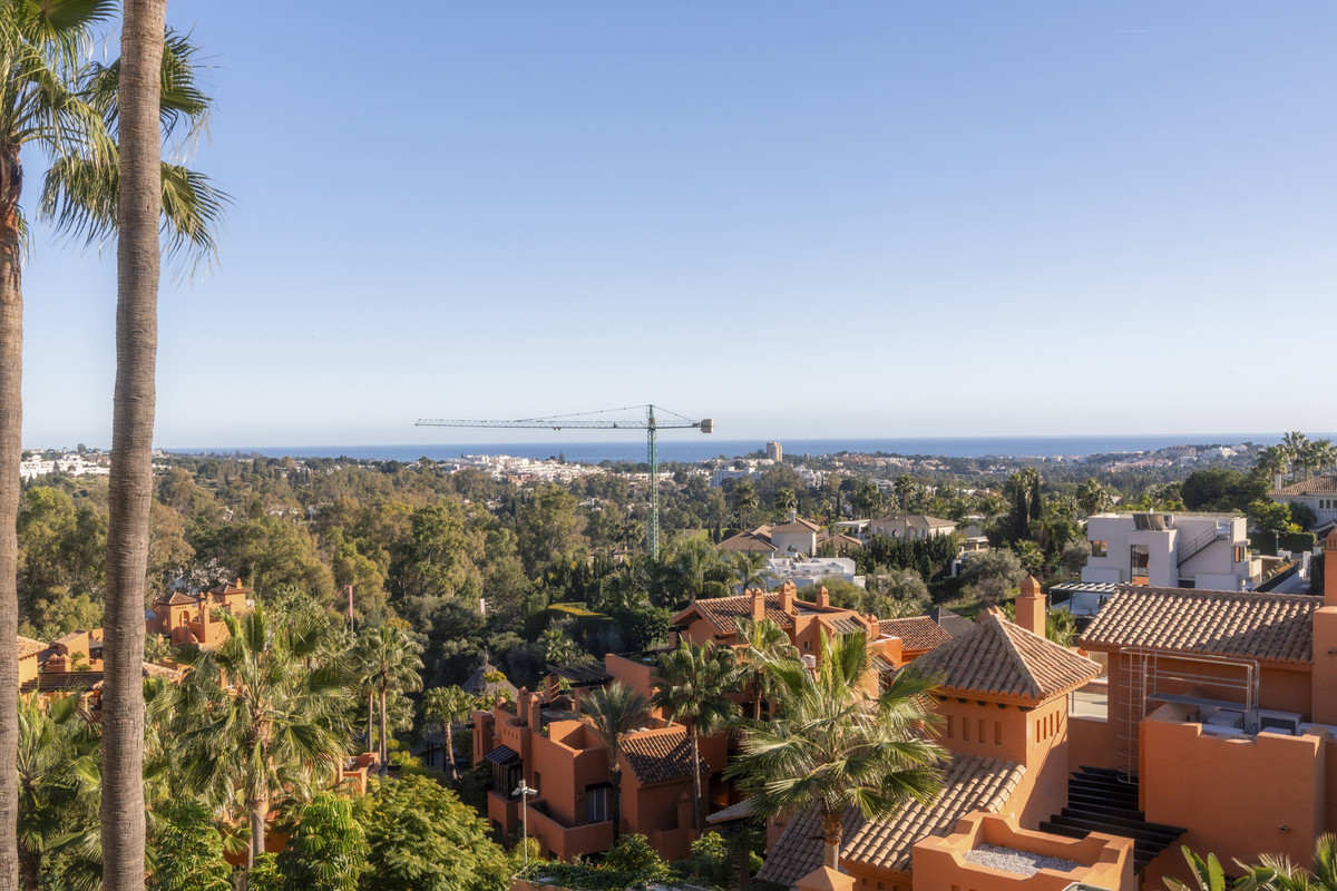 Step into luxury with this newly renovated 2-bedroom, 2-bathroom middle-floor apartment in the heart of Nueva Andalucía. Designed for modern living, it features a state-of-the-art Gaggenau kitchen, elegant herringbone wood flooring, and a spacious southwest-facing terrace offering breathtaking panoramic views.