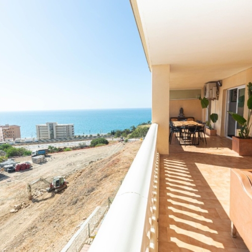 This penthouse has it all. Located just 100 m from the beach and 50 m from Carvajal train station. The bright, tastefully decorated 2 bedroom, 2 bathroom penthouse is in new condition. The apartment is also prepared to expand to 3 bedrooms in one part of the living room. It has an open plan with a bar kitchen, large covered terrace with lovely sea views. With a private roof terrace with splash pool and BBQ and sun terrace, you have fantastic sea views. A large communal pool is on site and 2 garage spaces and storage are included in the price.