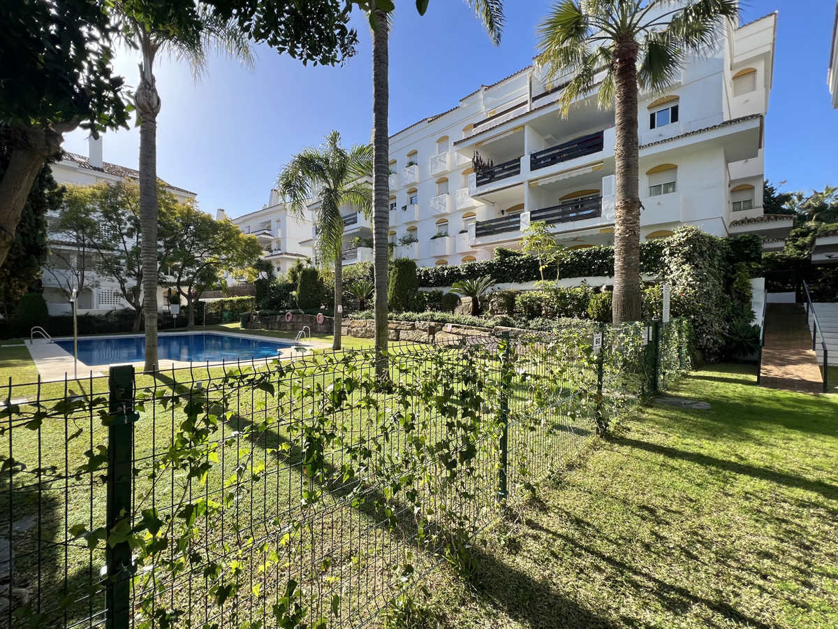 Beautiful front line golf corner apartment set in a nice residential beach side complex in Guadalmina Baja just a few steps away from the beach and the well known beach restaurants El Ancla, Macao and Barbillon. This lovely and extremely well keep apartment enjoy beautiful views of la Concha mountain of Marbella, the Guadalmina Golf and also side sea views. The gated complex offer communal gardens and swimming pool. The entrance hall opens on to a spacious living and dining room with fireplace, fully fitted kitchen with utility room. A separate corridor gives access to the master bedroom with ensuite bathroom, also to another two good size bedrooms sharing a bright bathroom. There is an underground private parking (15 m2) accessible by lift. 24 hours security.