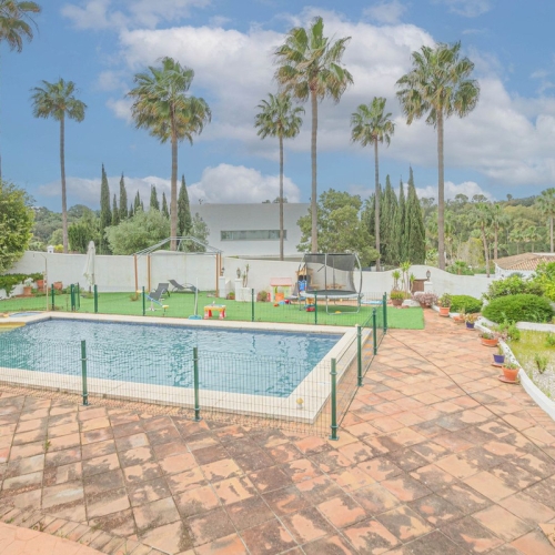 This impressive villa in Sotogrande, one of Spain's most exclusive residential areas, combines timeless elegance with the highest level of comfort. Situated on a spacious 2,500 m² plot, the property boasts a built area of approximately 600 m², making it perfect for sophisticated living.
