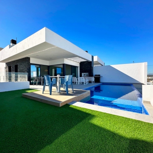 Luxury living on the Costa Blanca: modern villa with 3 bedrooms, large swimming pool and tropical garden for sale.Discover this spectacular modern villa on the sunny Costa Blanca, Spain, available to move into immediately. Set on an extensive plot of 530 m², this contemporary designed property offers everything you need to enjoy Mediterranean living to the full. The villa is for sale fully furnished, allowing you to enjoy your new home from day one.With three spacious bedrooms and three elegant bathrooms, this villa guarantees comfort and privacy for you and your guests. Each room has been meticulously designed with high quality materials and modern finishes, creating a harmonious and luxurious living environment (one of the bedrooms is located on the ground floor, with an en-suite bathroom).The real highlight of this property is its stunning private swimming pool, ideal for relaxing and enjoying a refreshing dip on warm summer days. The surrounding garden offers ample space to relax, sunbathe and enjoy the outdoors. There are also perfect areas for outdoor entertaining, so you can spend long summer evenings with family and friends.The villa is located in a quiet and safe area, with easy access to beautiful beaches, shops, restaurants and all the amenities that the Costa Blanca has to offer.For golf enthusiasts: The prestigious La Marquesa golf course in Ciudad Quesada is less than 2 km from the villa.Don't miss this unique opportunity to acquire a luxury villa in one of Spain's most desirable regions. Contact us today for more details or to arrange a viewing.