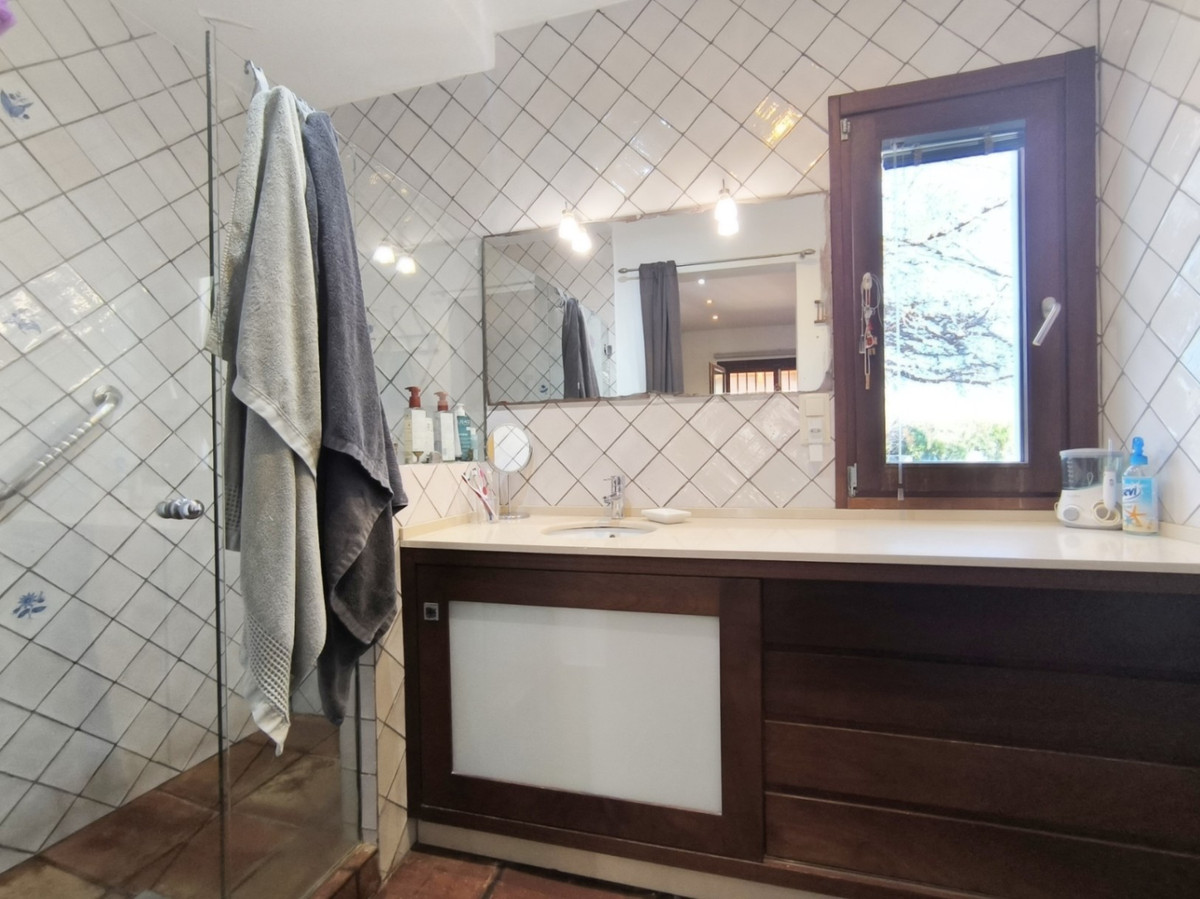 Outside, the villa has a large swimming pool, ideal for enjoying the Mediterranean climate. Its privileged orientation guarantees natural light throughout the day and all year round, creating a warm and welcoming atmosphere in each season.