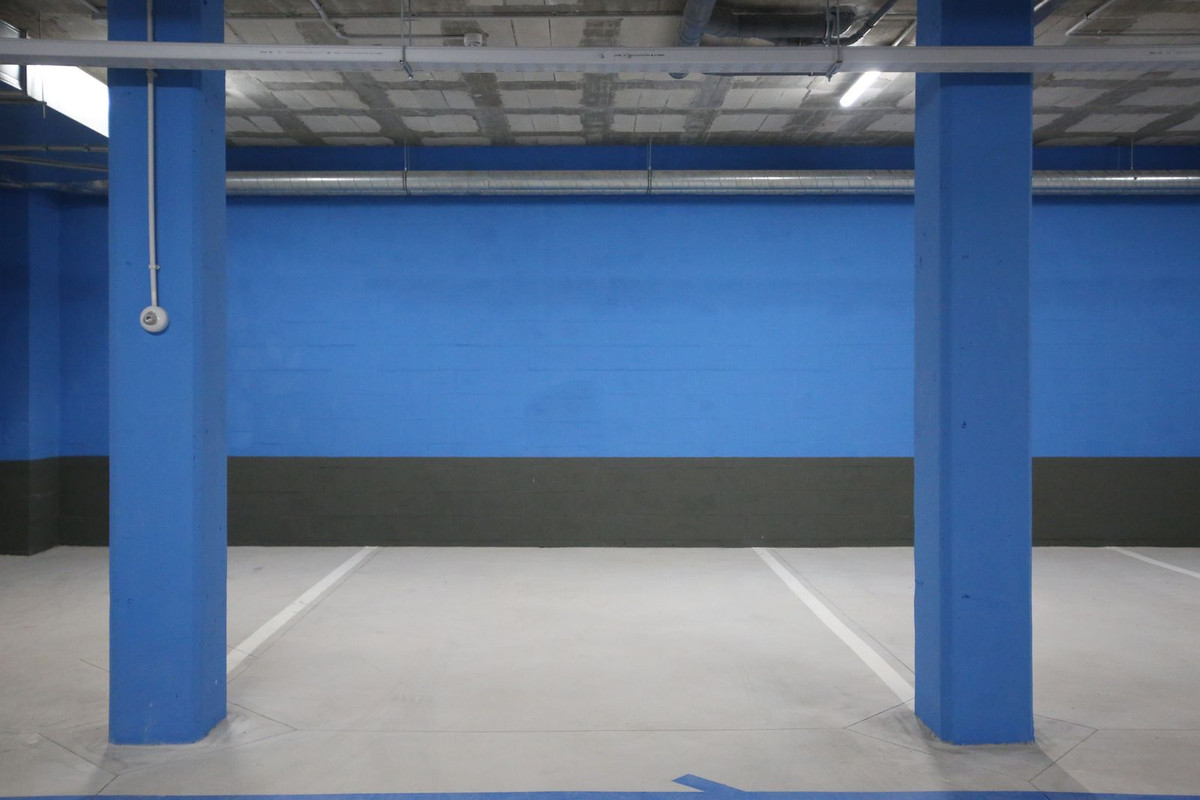 It includes two numbered parking spaces, one in an indoor garage and one outside, as well as a storage room for greater convenience.