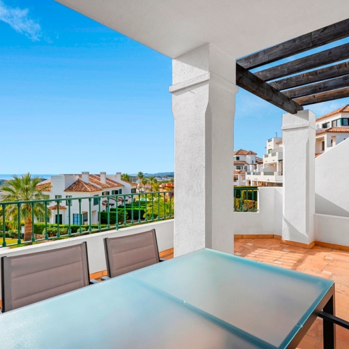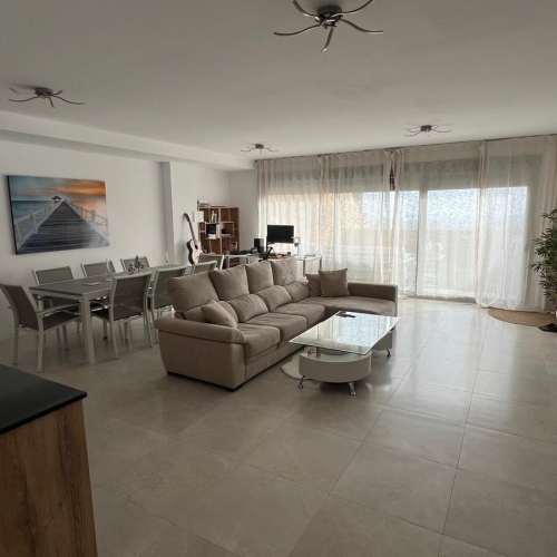 The apartment already includes **hot & cold air conditioning**, **satellite TV**, **landline**, and **broadband** – all ready to go. The urbanization is equipped with **two lifts**, a **communal pool** with a shower, and a **large south-facing sun terrace** to soak up the sun year-round.