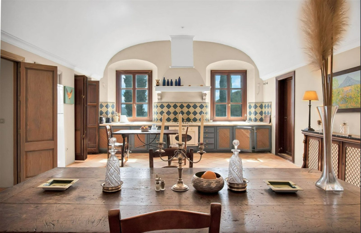 Located just a few kilometers from the charming village of Gaucín, this remarkable villa is surrounded by lush, year-round greenery and rugged mountains, providing both privacy and natural beauty. The main house, with a total area of 560 m², is designed in a classic Mediterranean style that complements its country setting. Featuring 4 spacious bedrooms, 4 bathrooms, and a convenient guest toilet, the home has been thoughtfully crafted to maximize light and space, with every room offering panoramic views of the spectacular landscape.