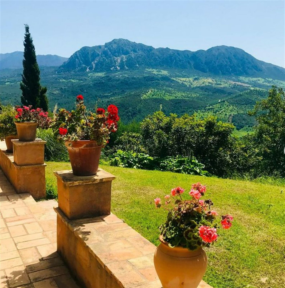 The property's 53,000 m² plot feels like an oasis, with fragrant gardens and awe-inspiring views at every turn. The large covered terrace, complete with a BBQ area and inviting corners to relax, offers the ideal setting for enjoying outdoor living year-round. Whether it's dining al fresco, lounging in the sun, or entertaining friends, this space is perfect for making memories.