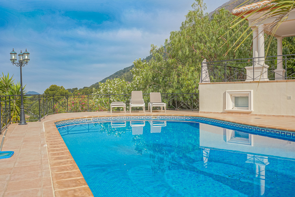 Beautiful traditional villa for sale situated on the southern flank of the Montgó in Javea. On the south side there are panoramic views across the valley to the mountains inland, while on the north side there are views of the impressive rock face of the Montgó.